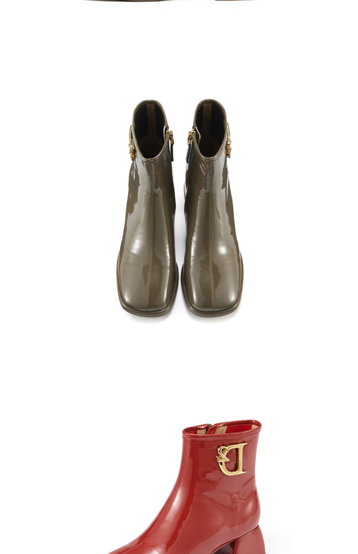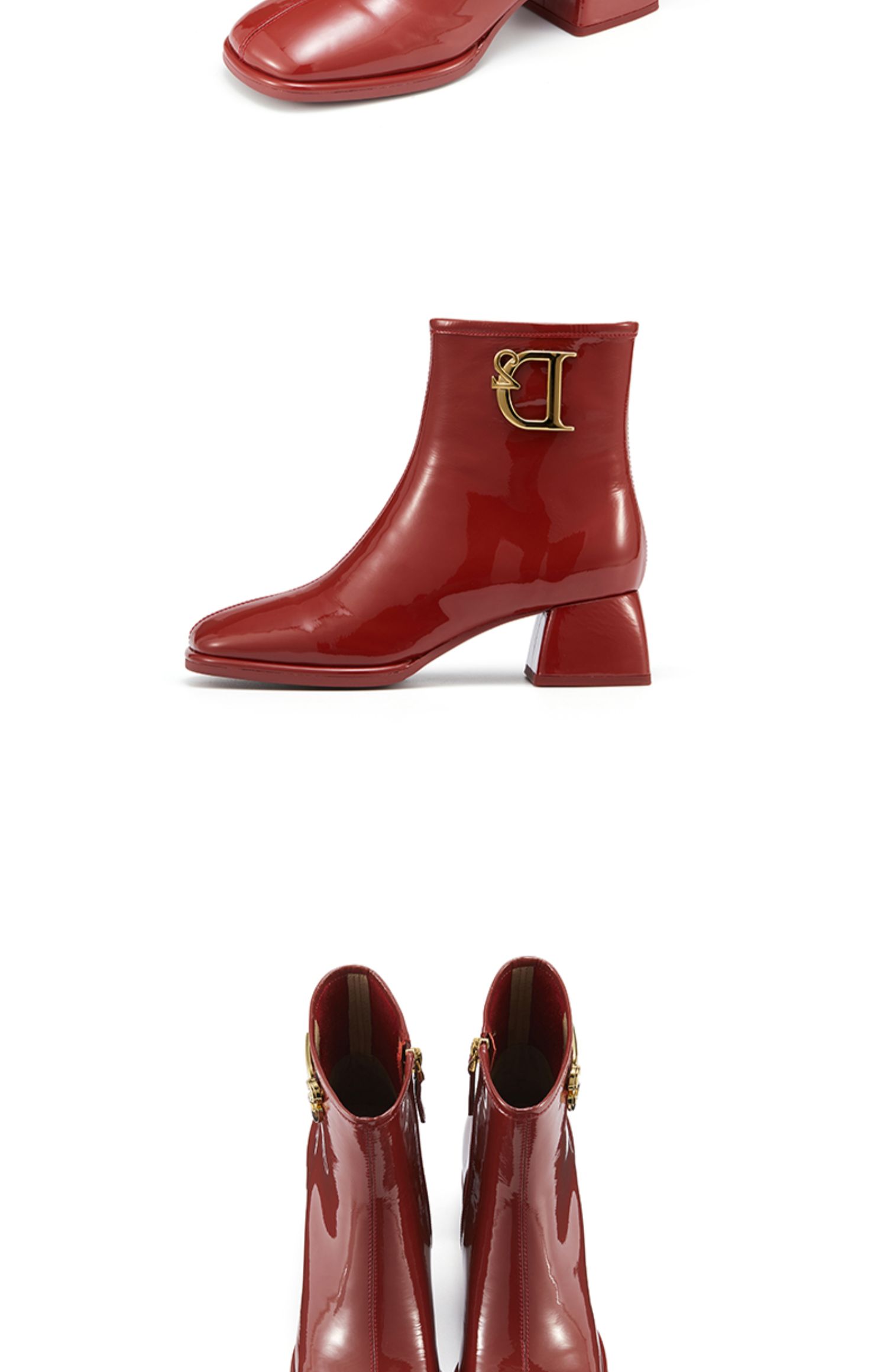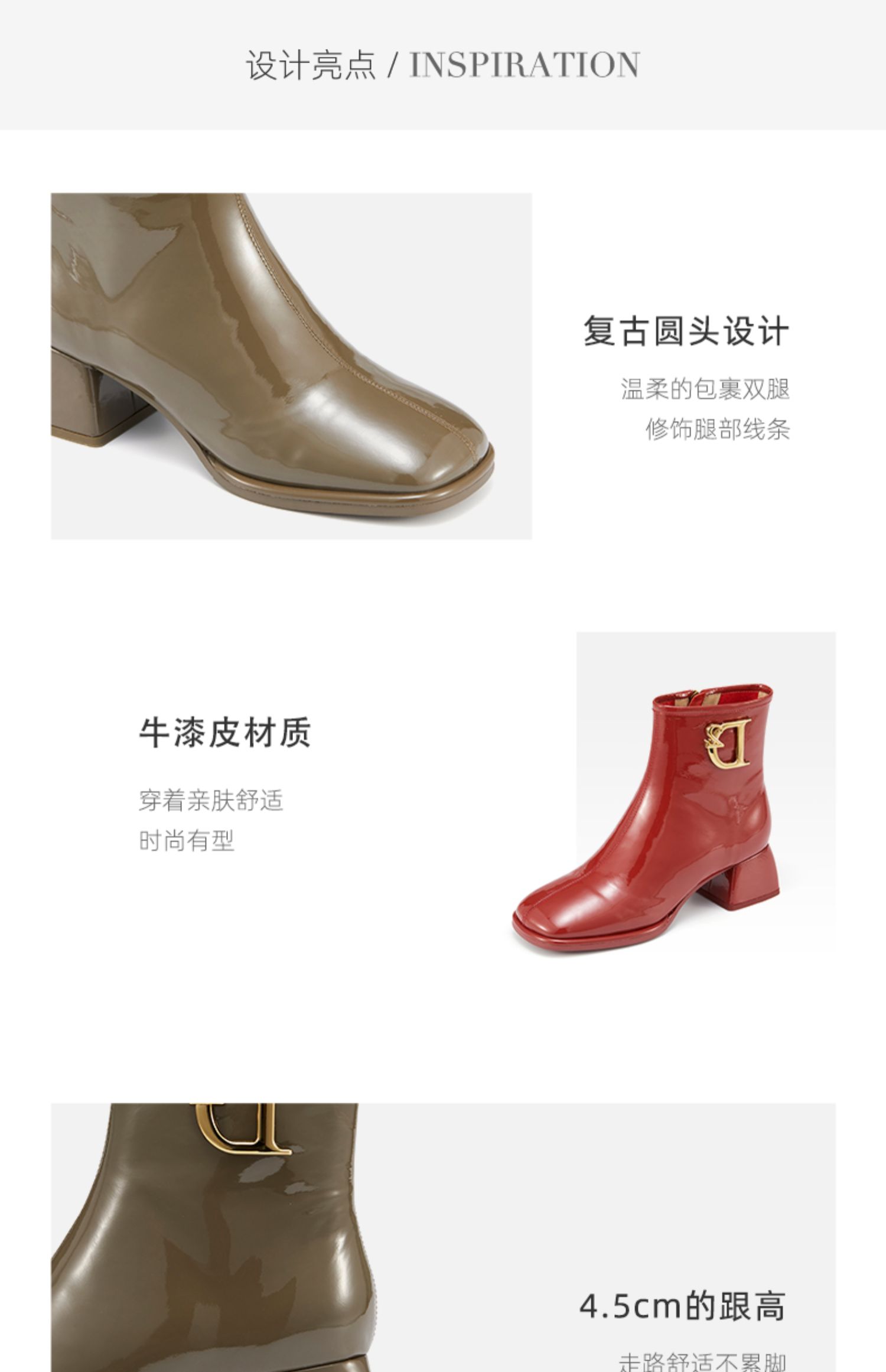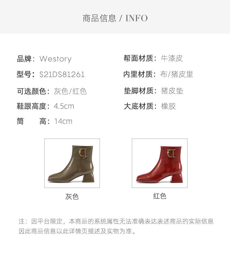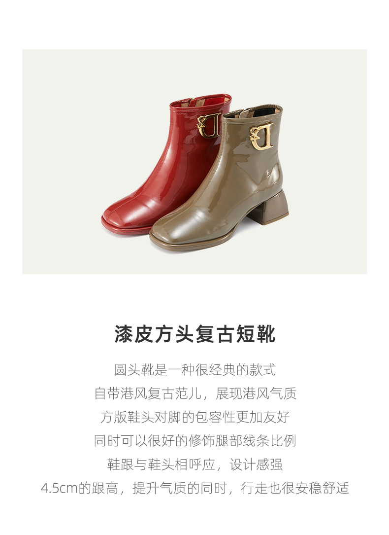westory2021秋季新款粗跟短靴漆皮金属扣时装靴S21DS81261