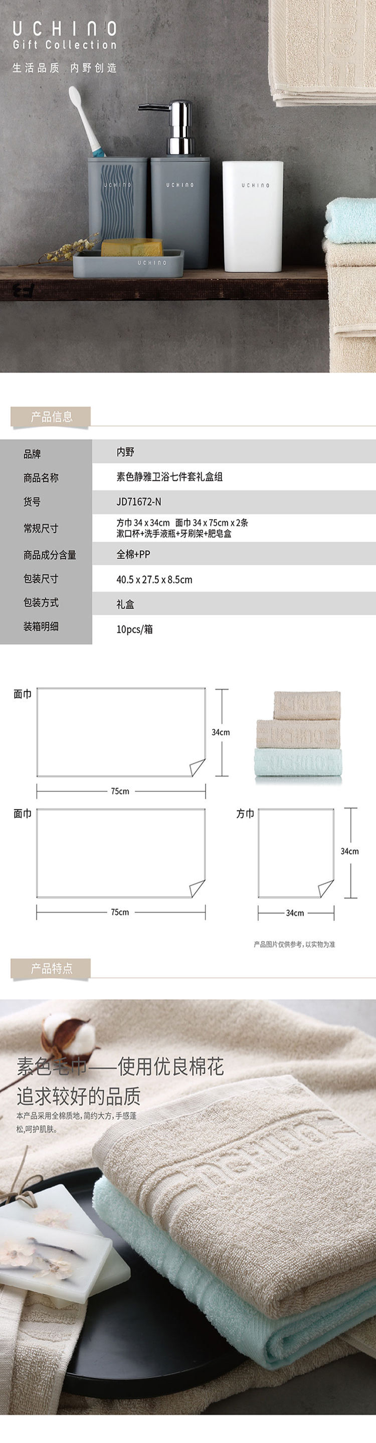 【分仓直发包邮】内野素色静雅卫浴七件套礼盒组JD71672-N
