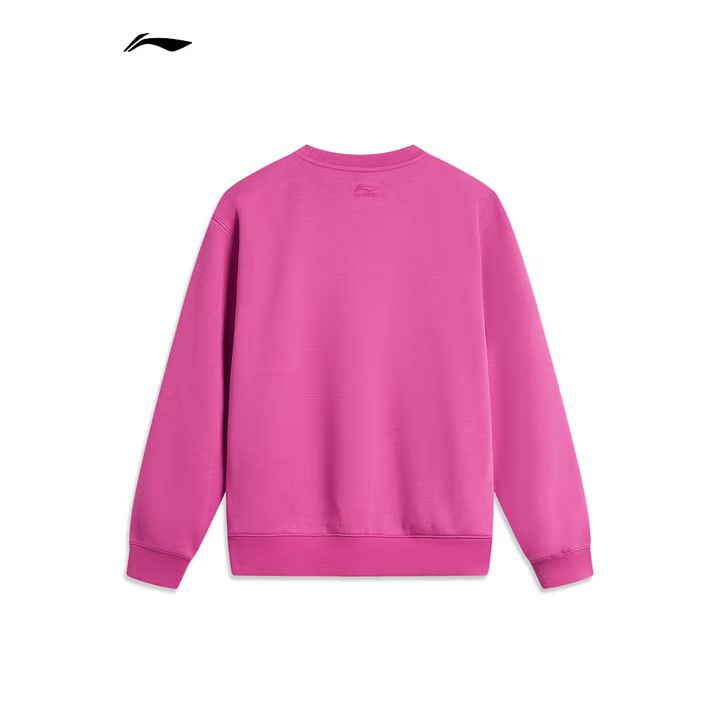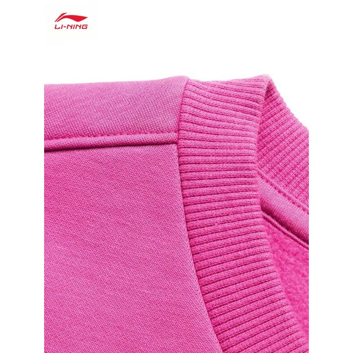 李宁女子草莓熊联名冬季加绒套头卫衣AWDU432-1玫红色