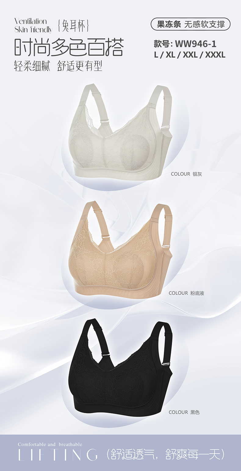 皇家丽美2026新款大胸显小内衣女聚拢收副乳透气宽肩带提拉隐形粉底液文胸WW946-1
