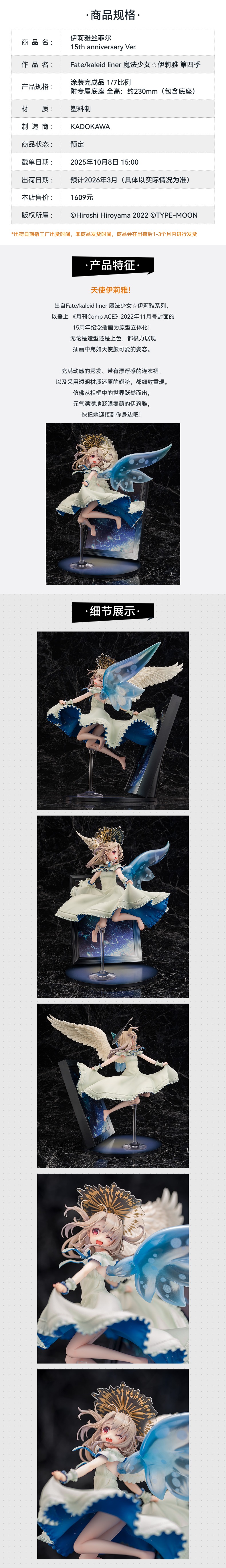 【GSC补款】1/7比例 伊莉雅丝菲尔 15th anniversary Ver. Fate/kaleid liner 魔法少女☆伊莉雅 第四季