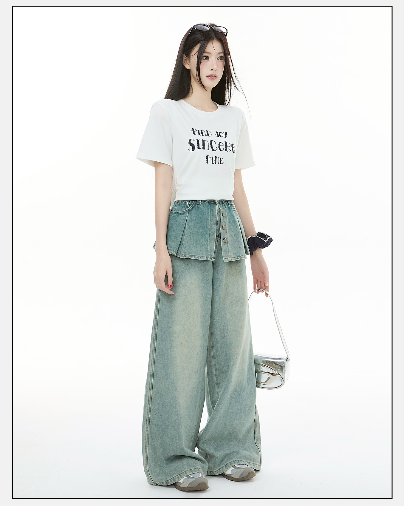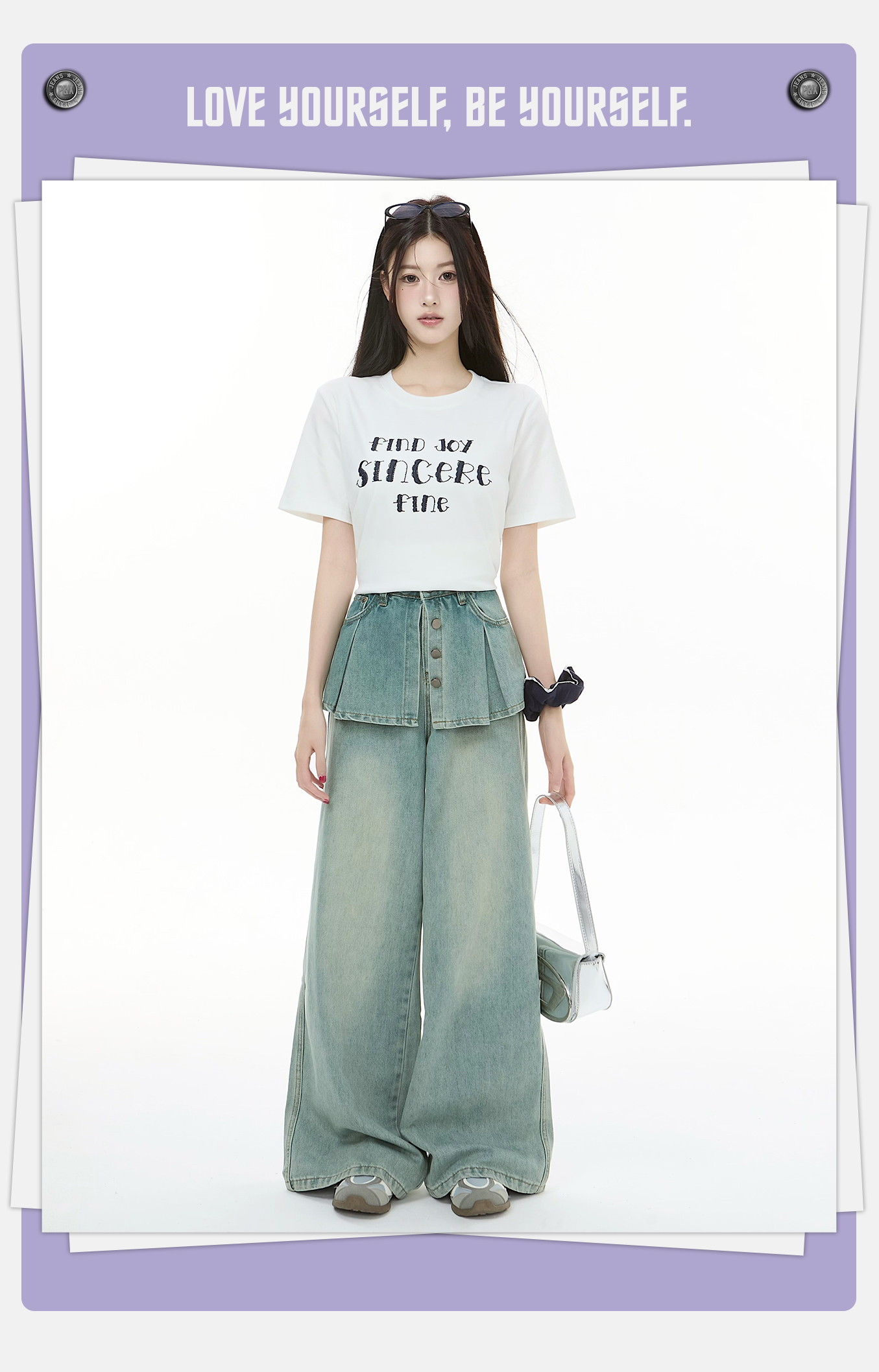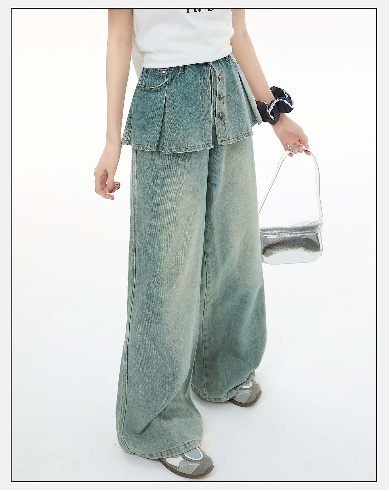 P&X设计师女装2025秋季丹宁风少女风阔腿牛仔长裤 825310234 蓝色