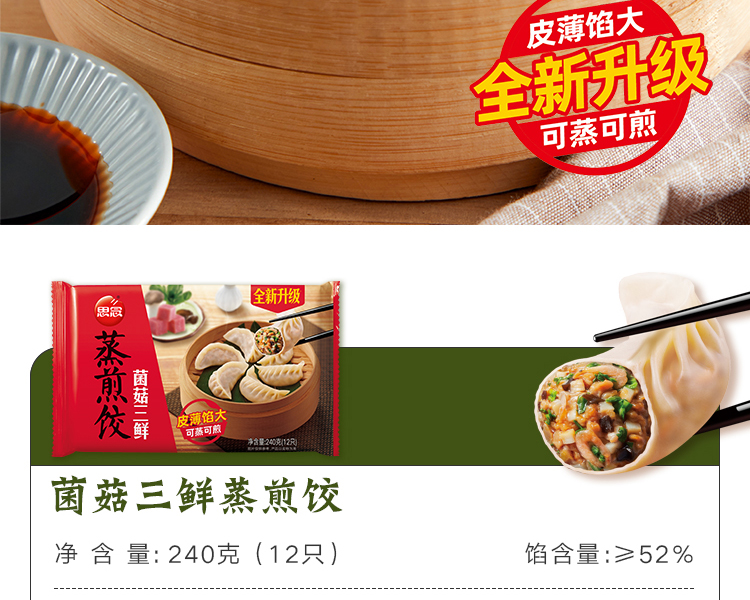 思念 美味速食代餐蒸煎饺子 菌菇三鲜240g12只