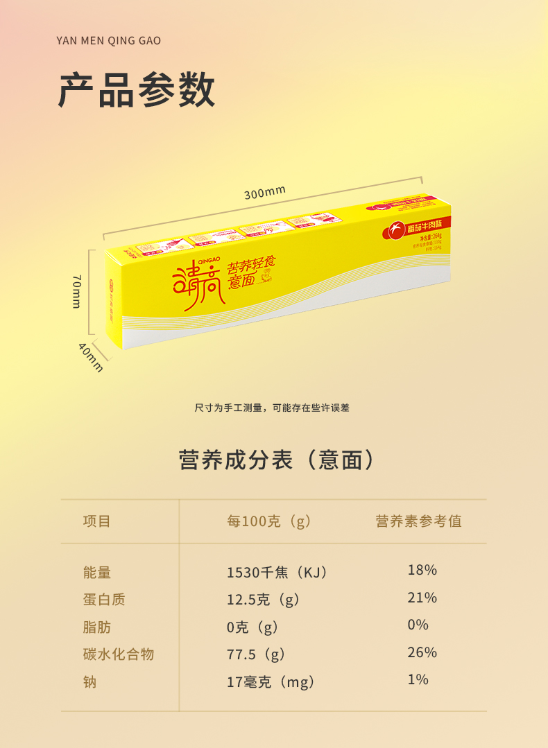 雁门清高苦荞轻食健身儿童速食意面264g意大利面