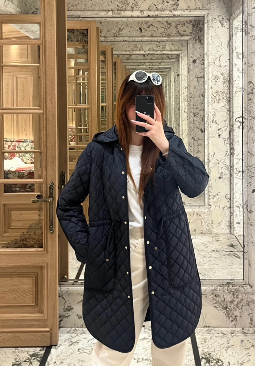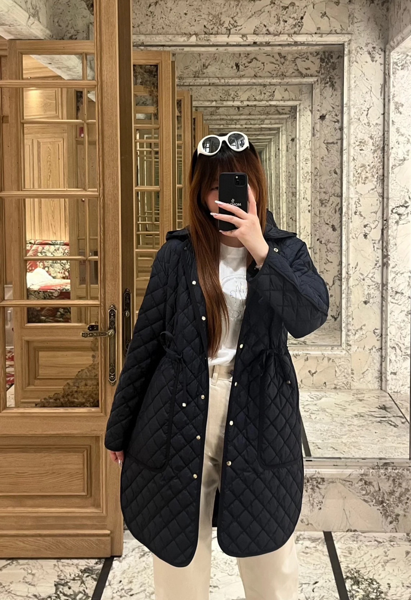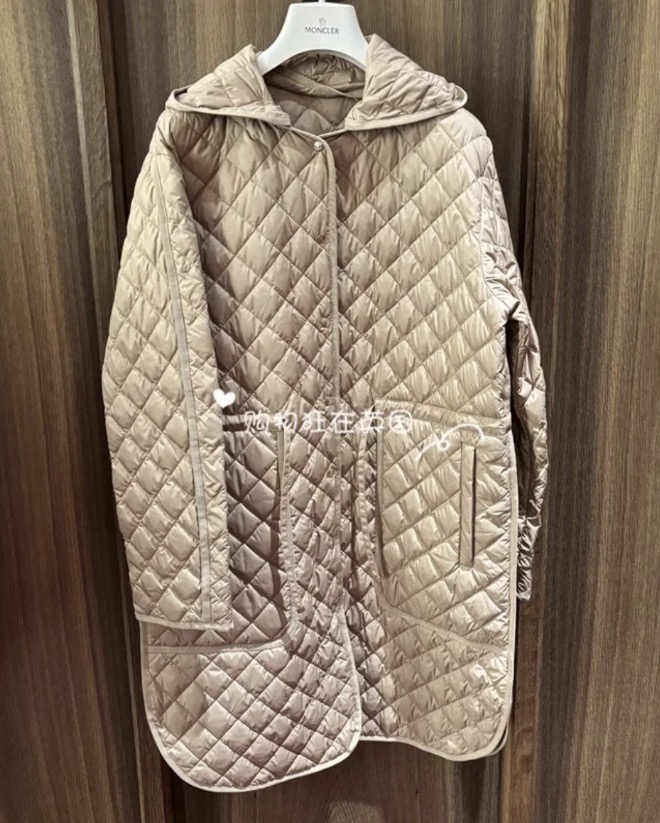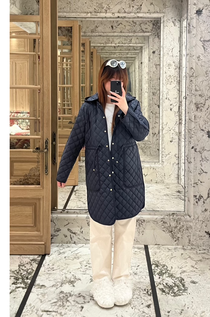 1218-9 渠道圆正 忙可 日本菱形衍缝 鹅绒填充 风衣款 抽绳收腰 中长 轻羽绒服