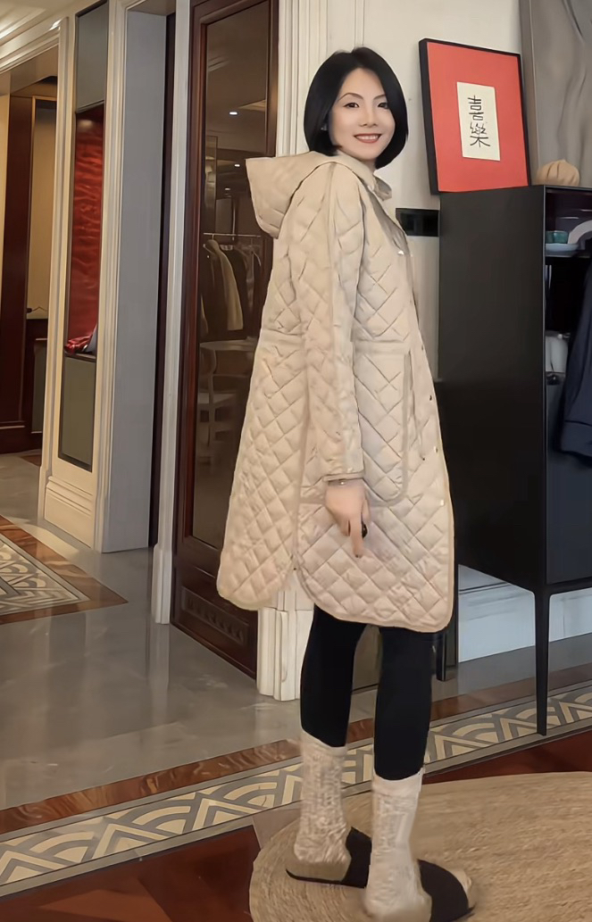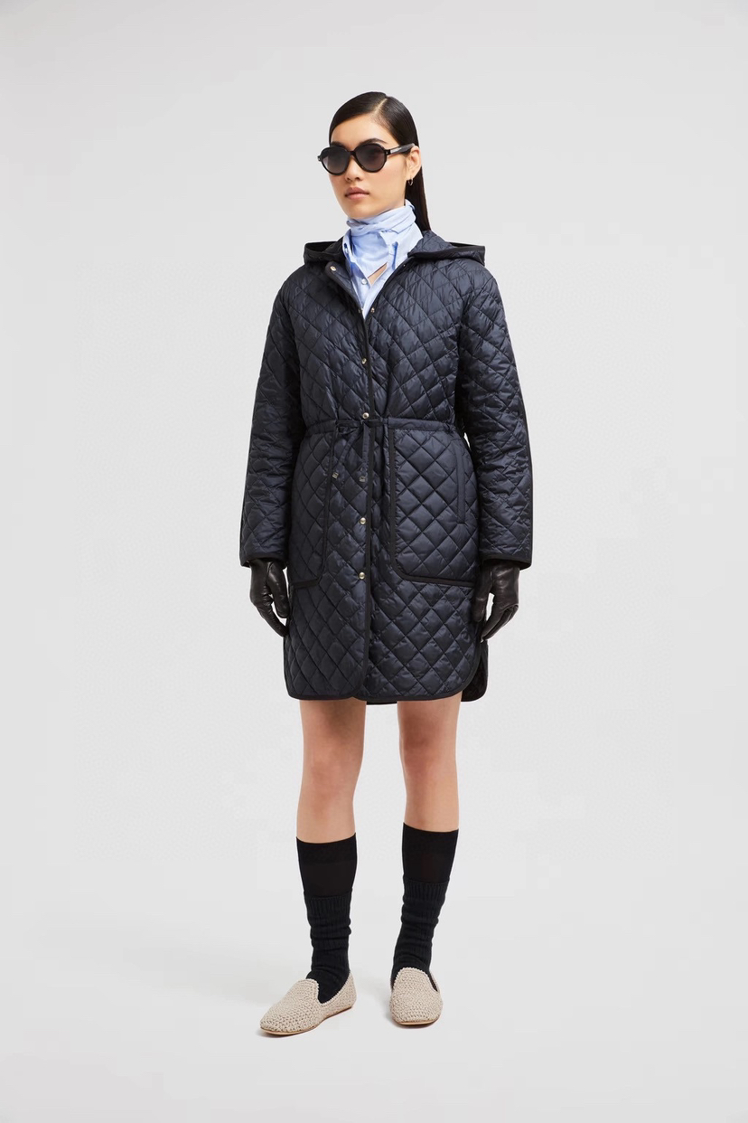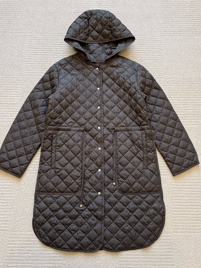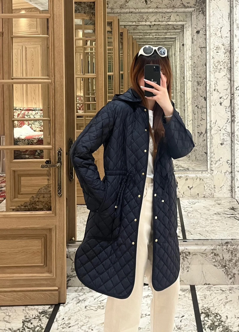 1218-9 渠道圆正 忙可 日本菱形衍缝 鹅绒填充 风衣款 抽绳收腰 中长 轻羽绒服