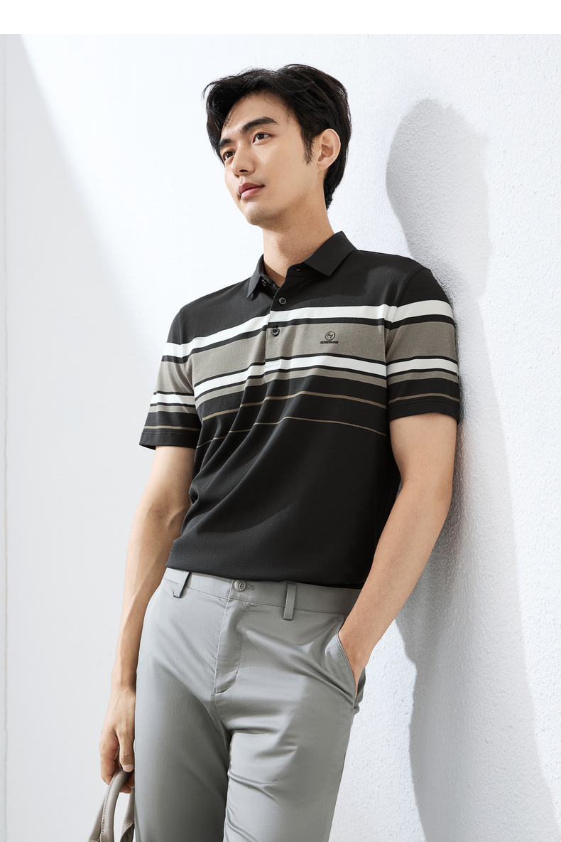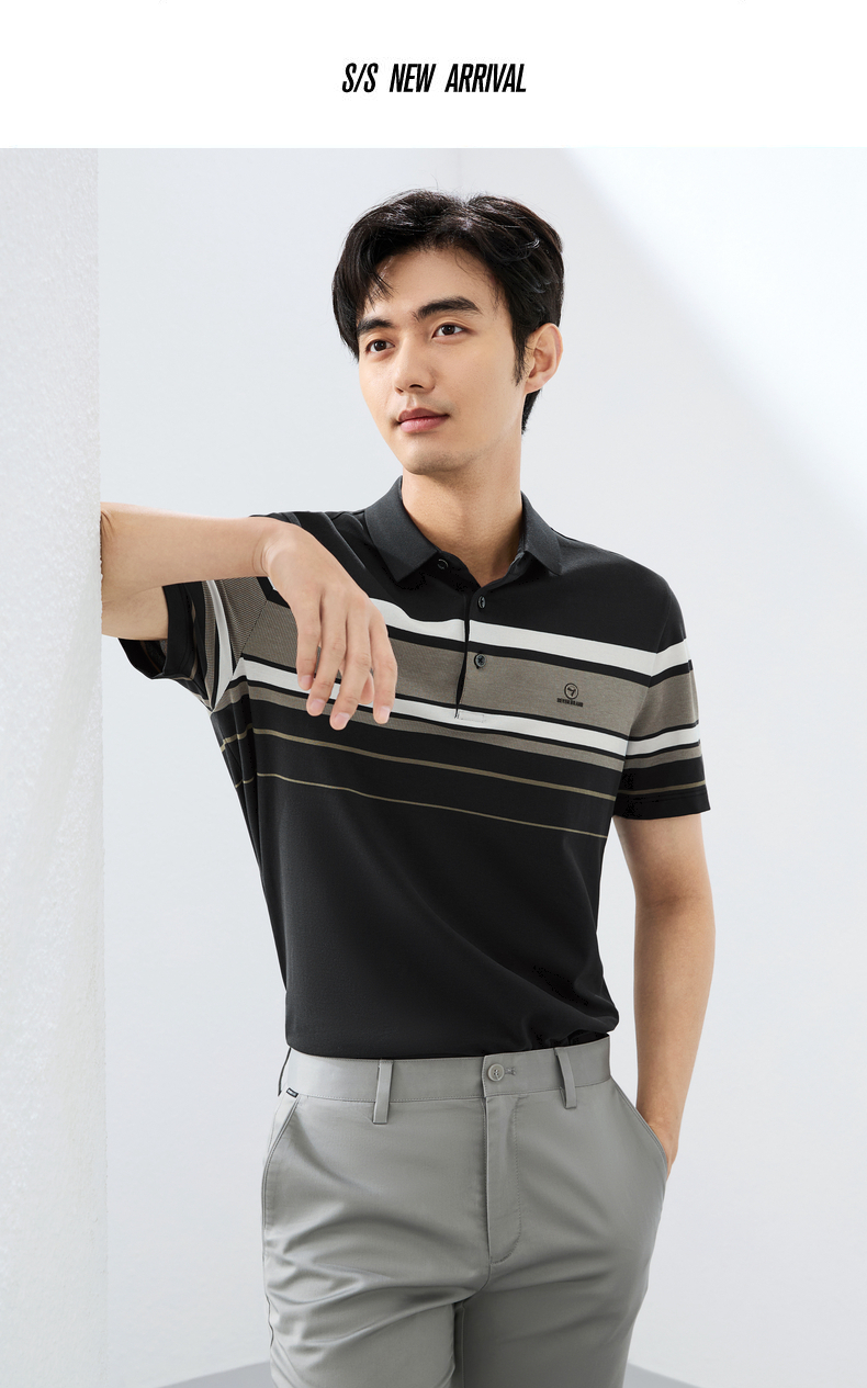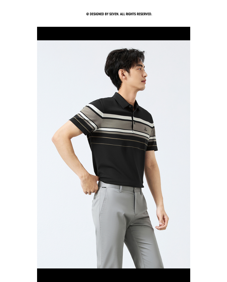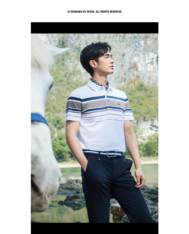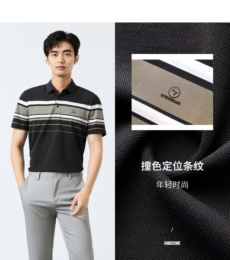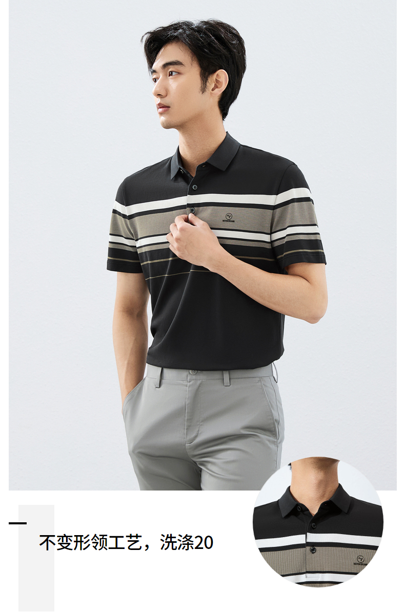 【定位条polo衫】柒牌撞色条纹POLO衫男夏季薄款休闲翻领短袖t恤128T72980