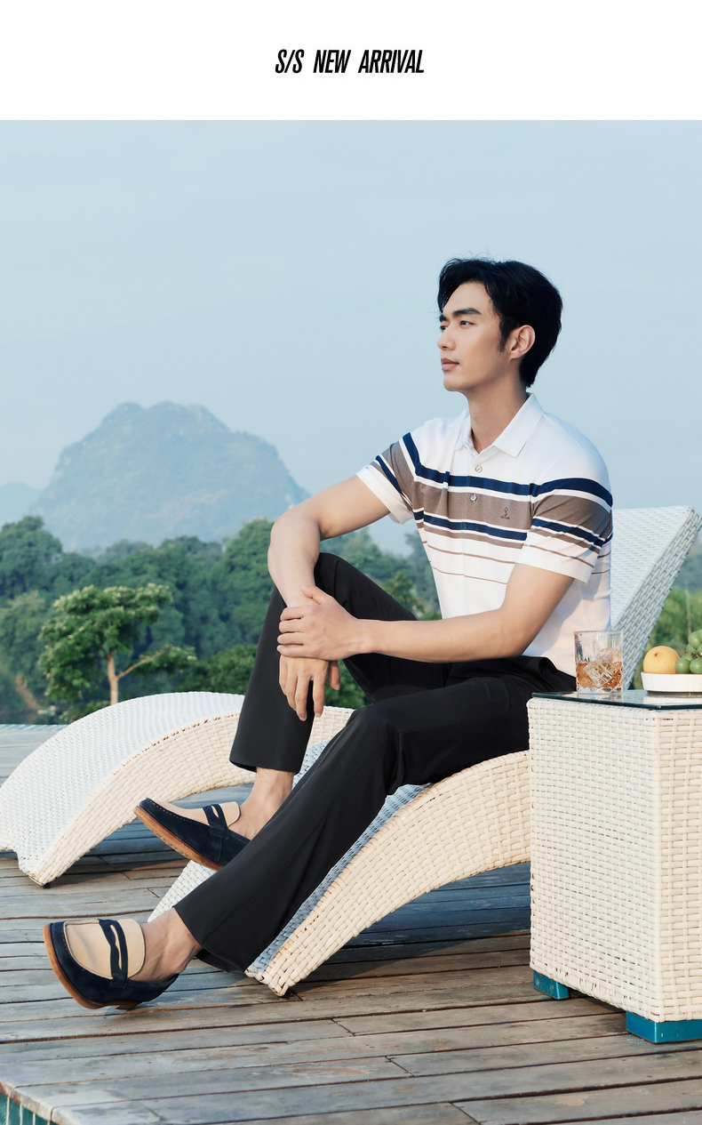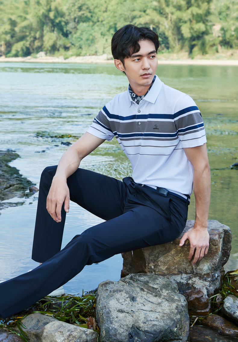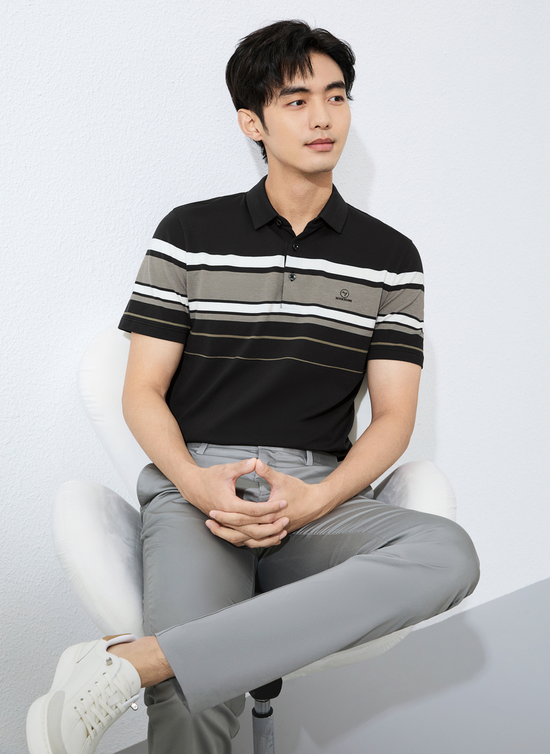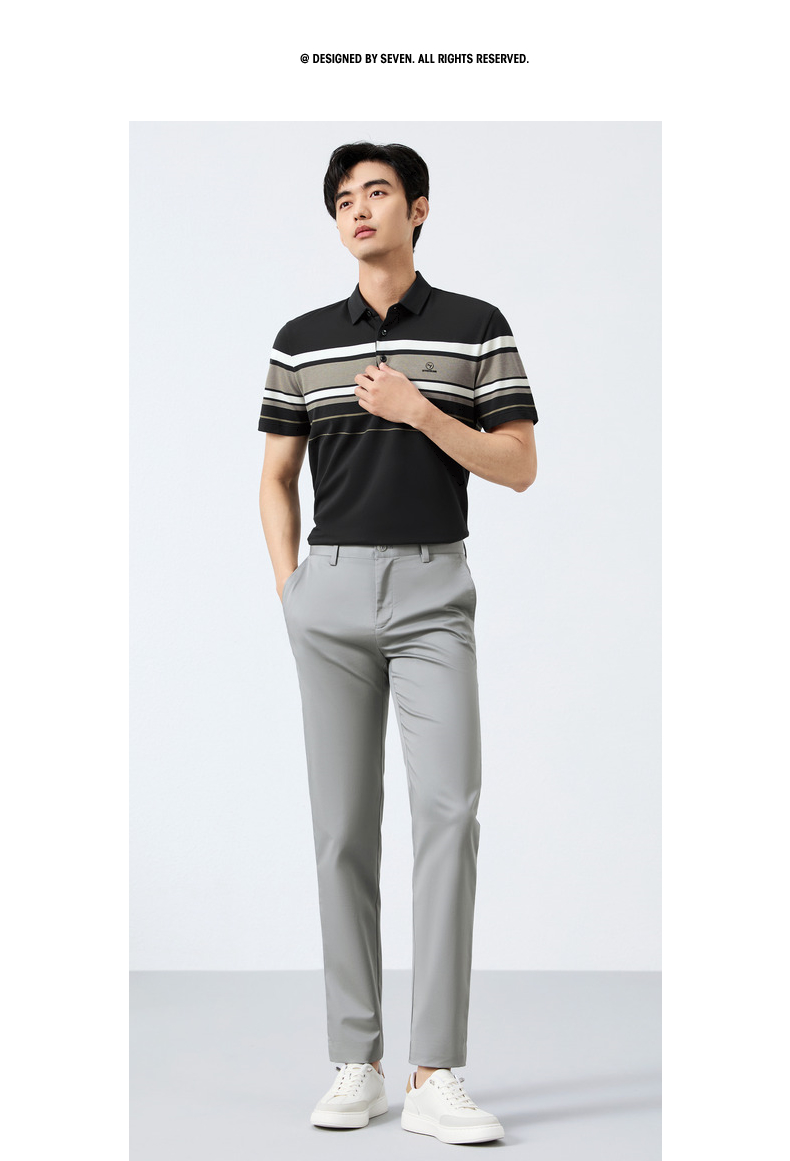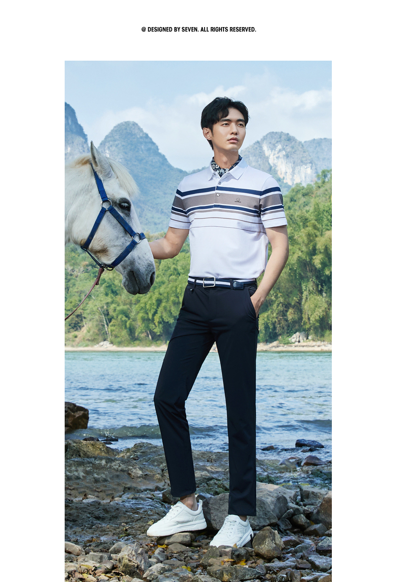 【定位条polo衫】柒牌撞色条纹POLO衫男夏季薄款休闲翻领短袖t恤128T72980