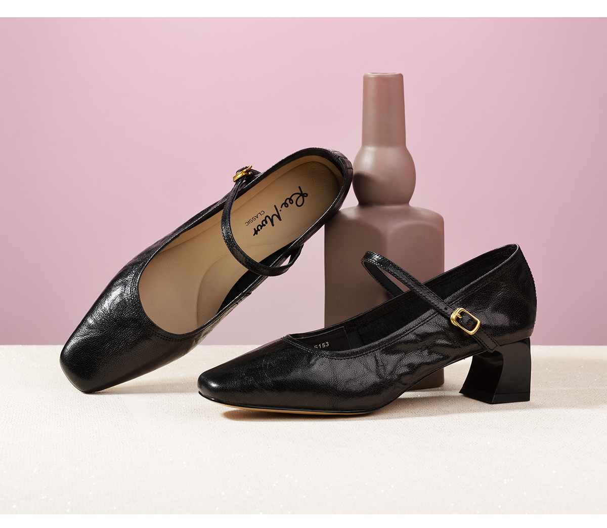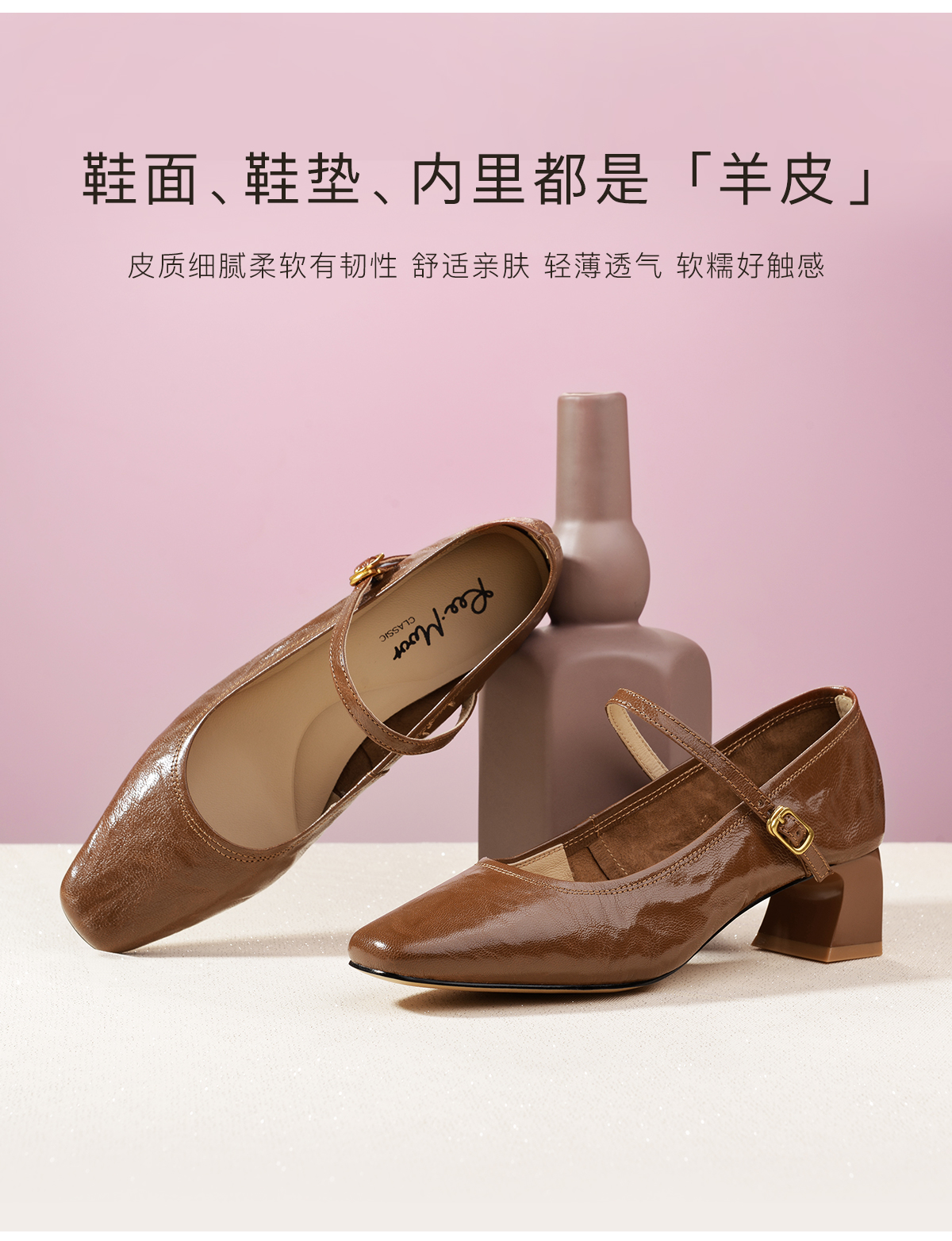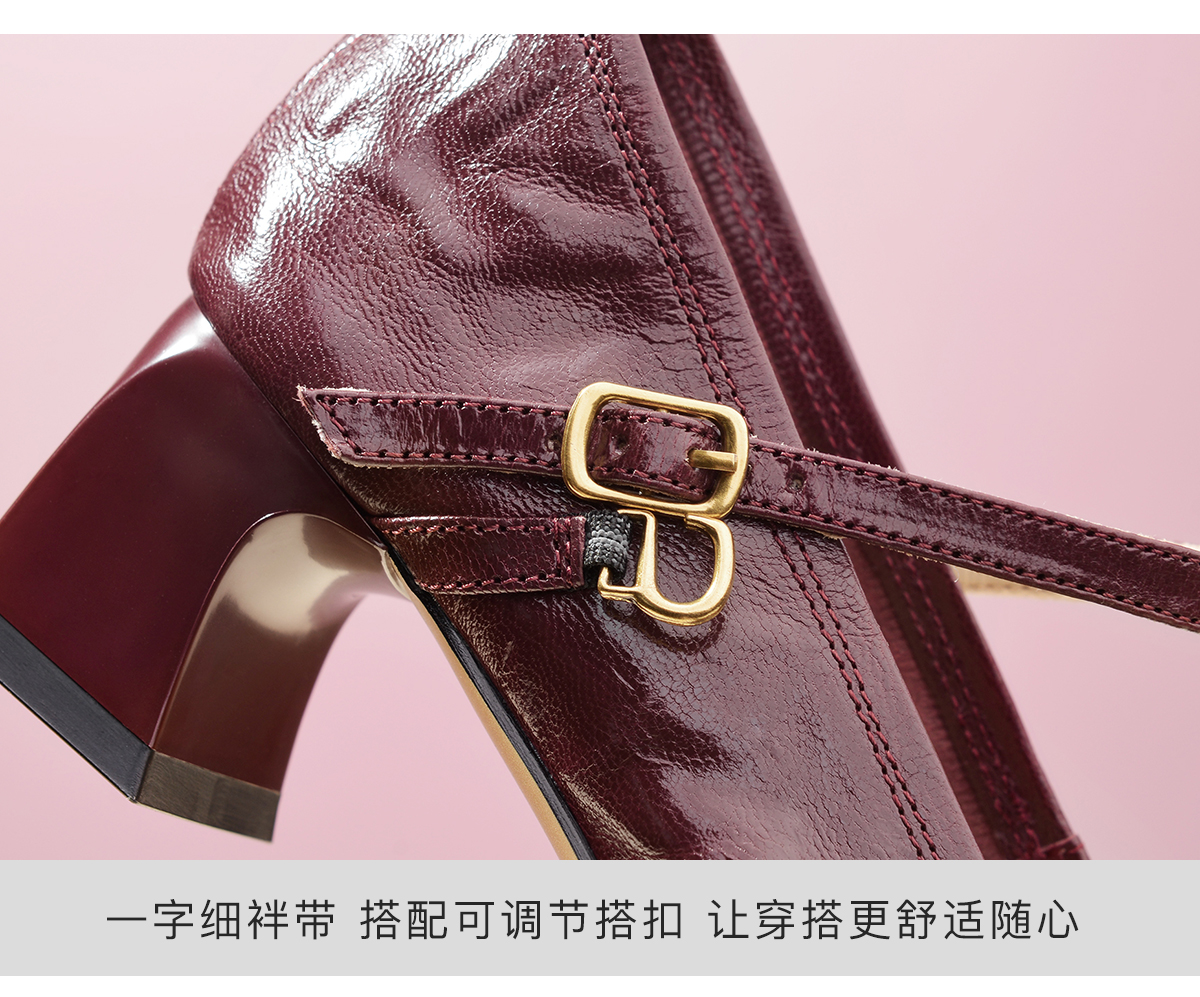 Reemoor 睿慕秋季新款复古风羊皮一字带玛丽珍R2V564