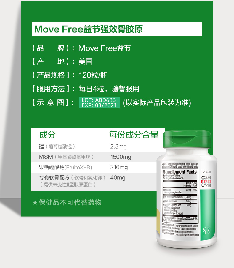 【金义发货】Move Free 骨胶原小绿瓶120粒