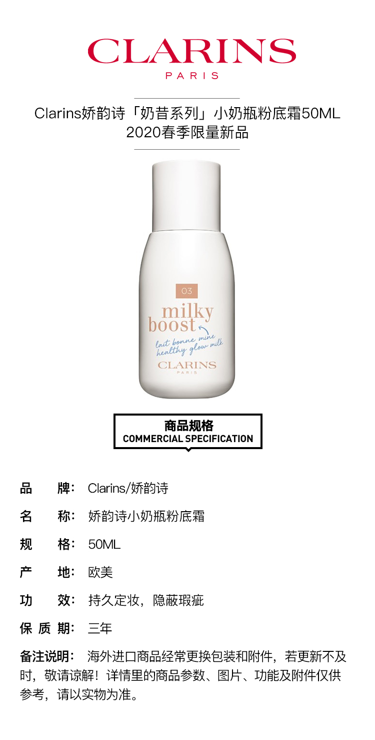 CLARINS/娇韵诗 「奶昔系列」小奶瓶粉底霜50ML 2020春季新品