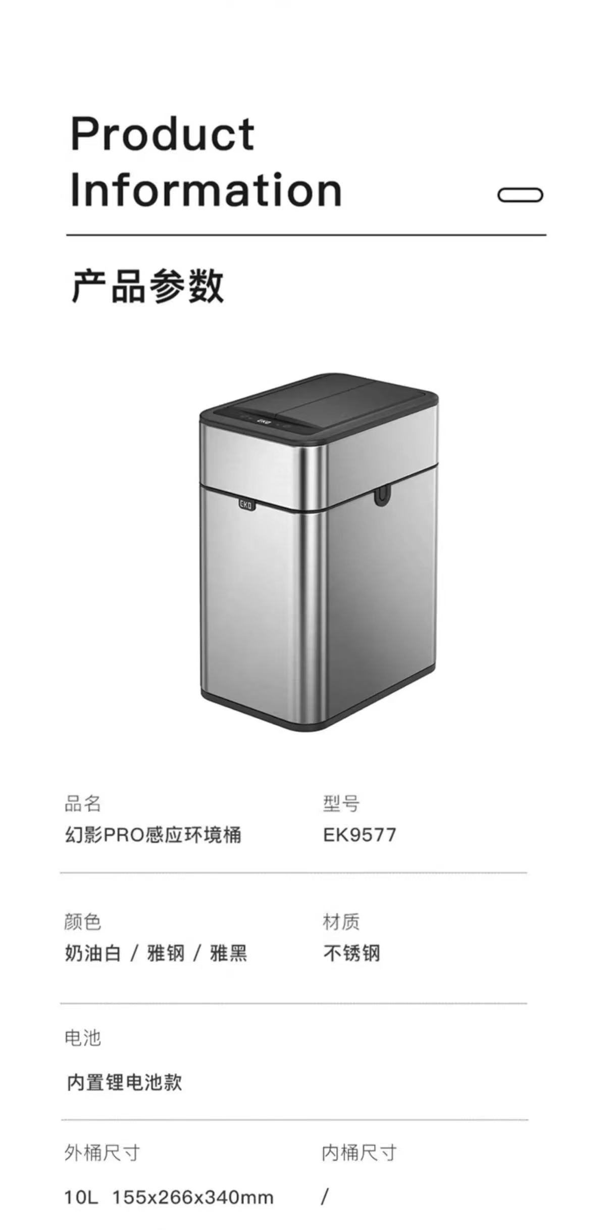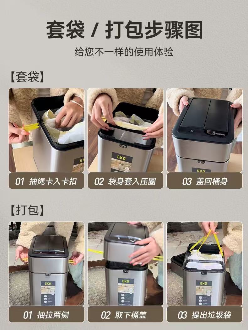 EKO智能垃圾桶自动感应式家用客厅厨房轻奢厕所卫生间打包大容量