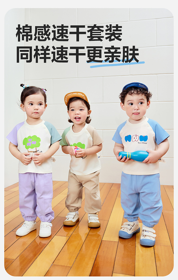 【棉感速干】迷你巴拉套装男女童儿童不闷汗凉感抑菌短袖长裤