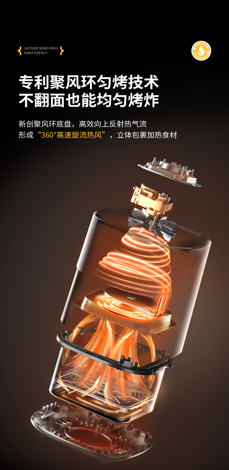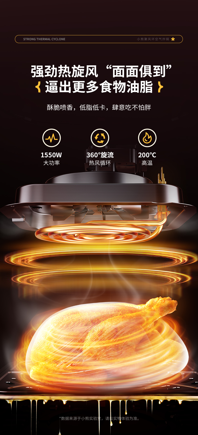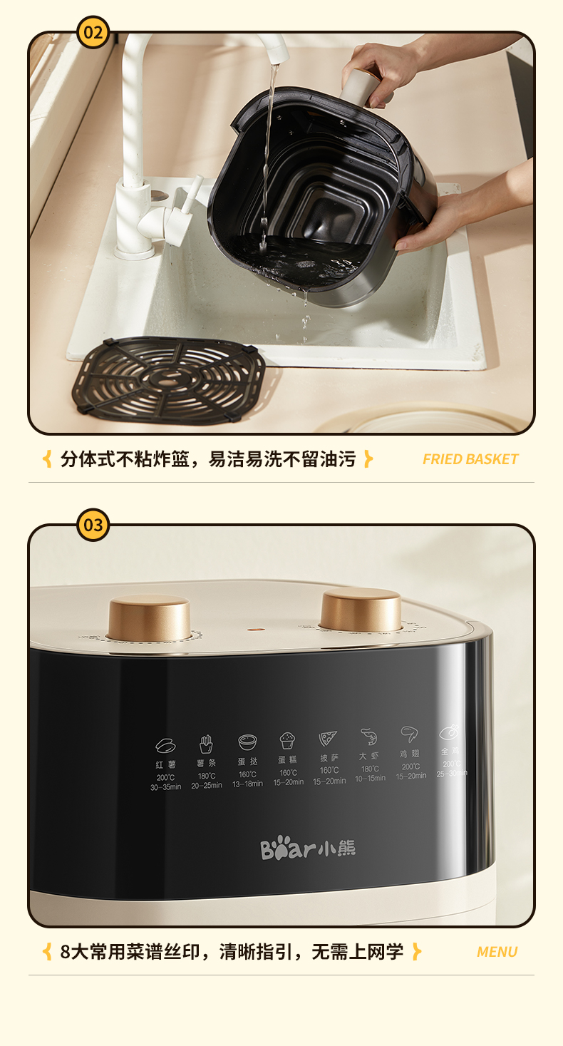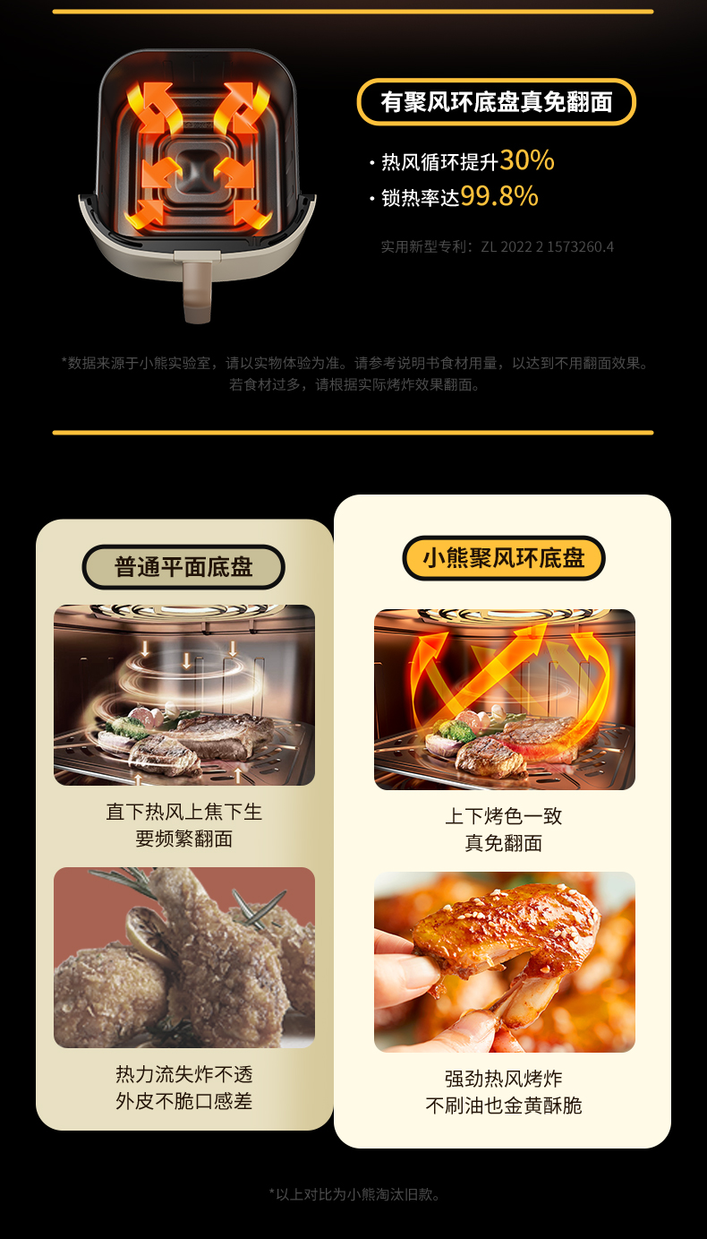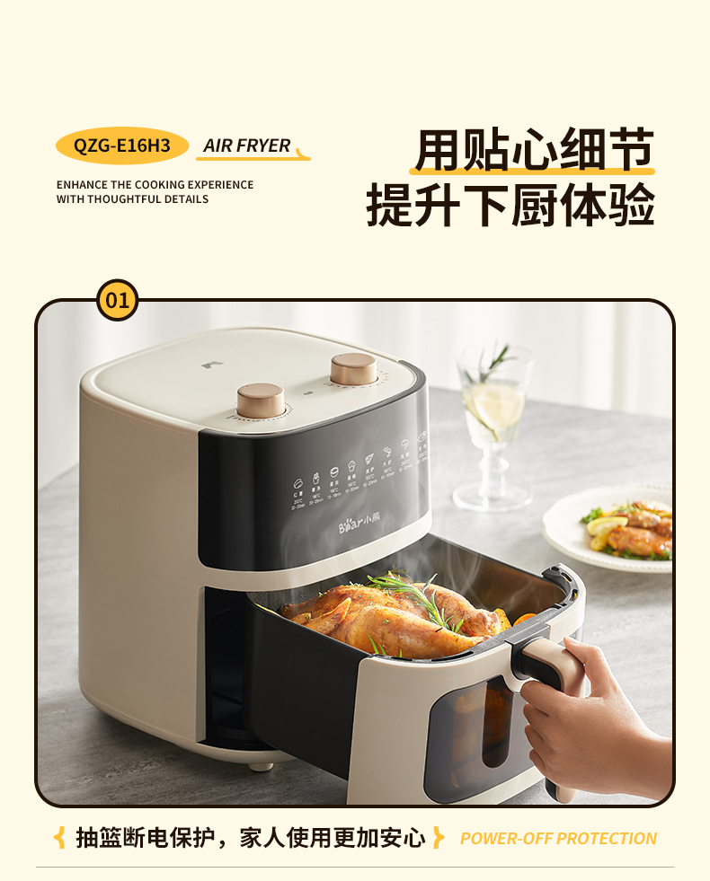 【小程序】小熊(Bear)空气炸锅 不用翻面家用多功能6L大容量低脂双旋钮操控微蒸汽嫩烤可视款电炸锅 QZG-E16H3
