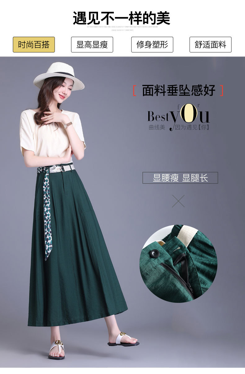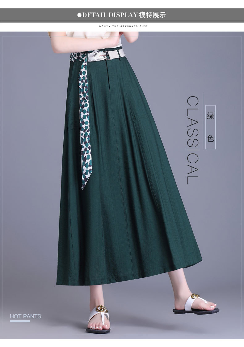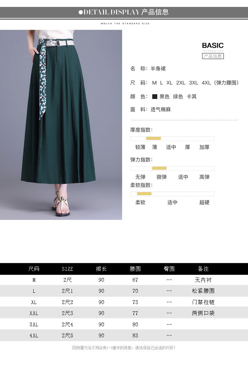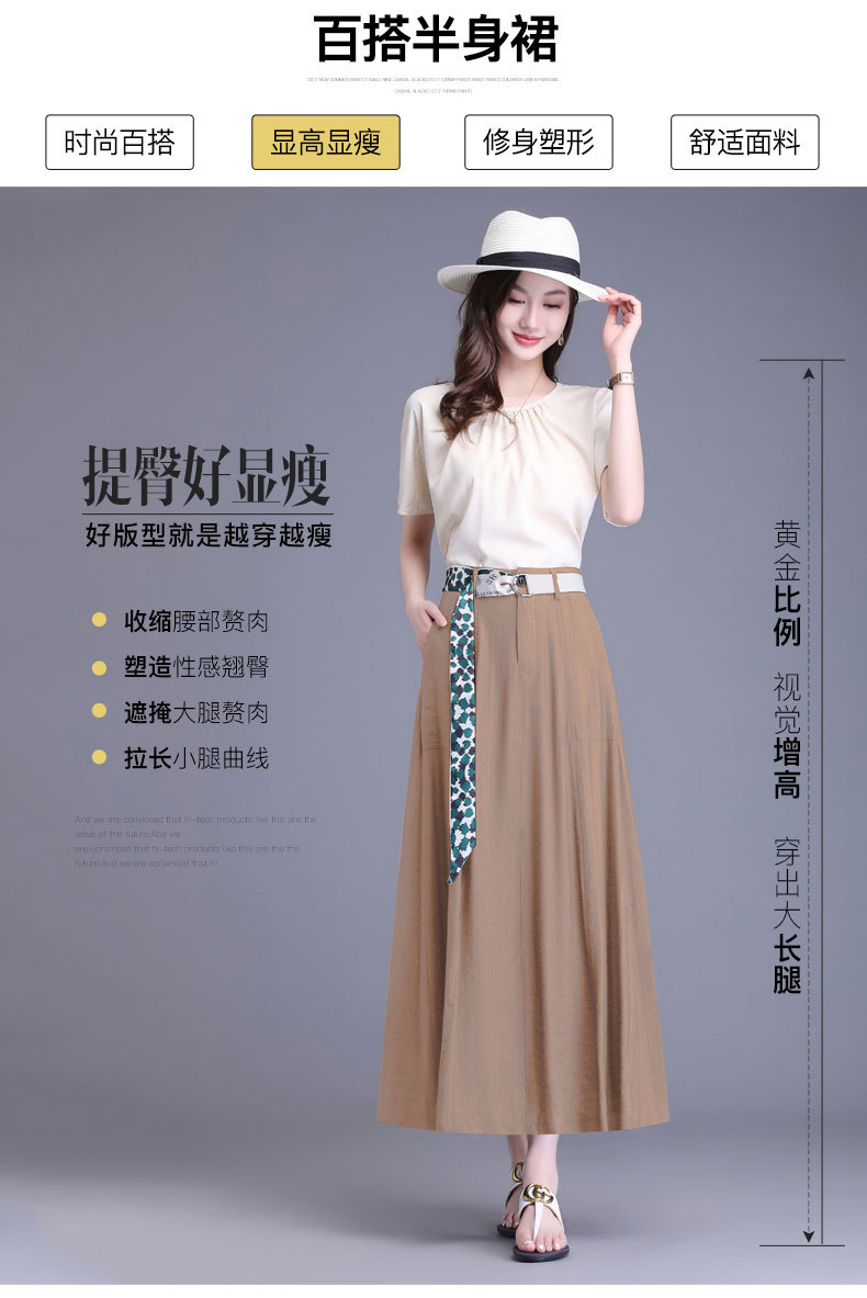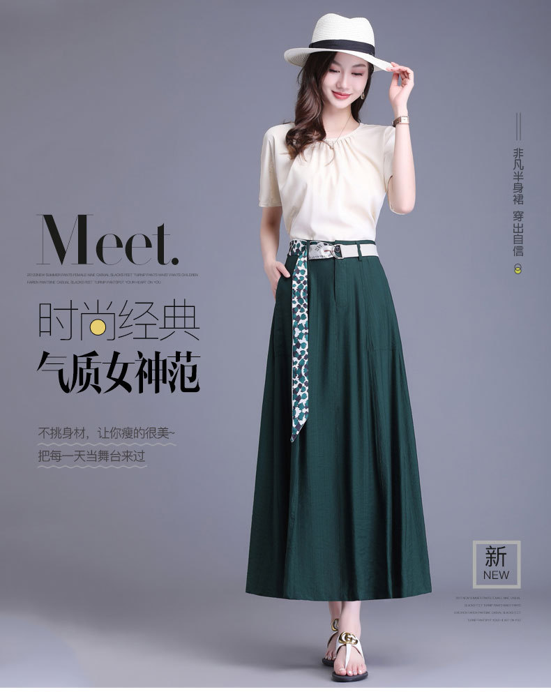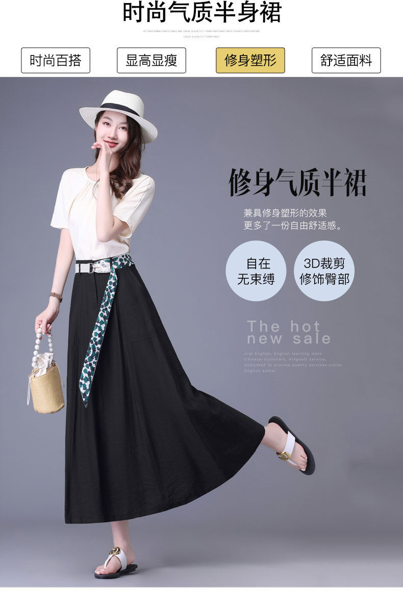 休闲时尚,夏款长款A字裙后腰松紧纯色简约气质大摆半身裙MYX-1660-L