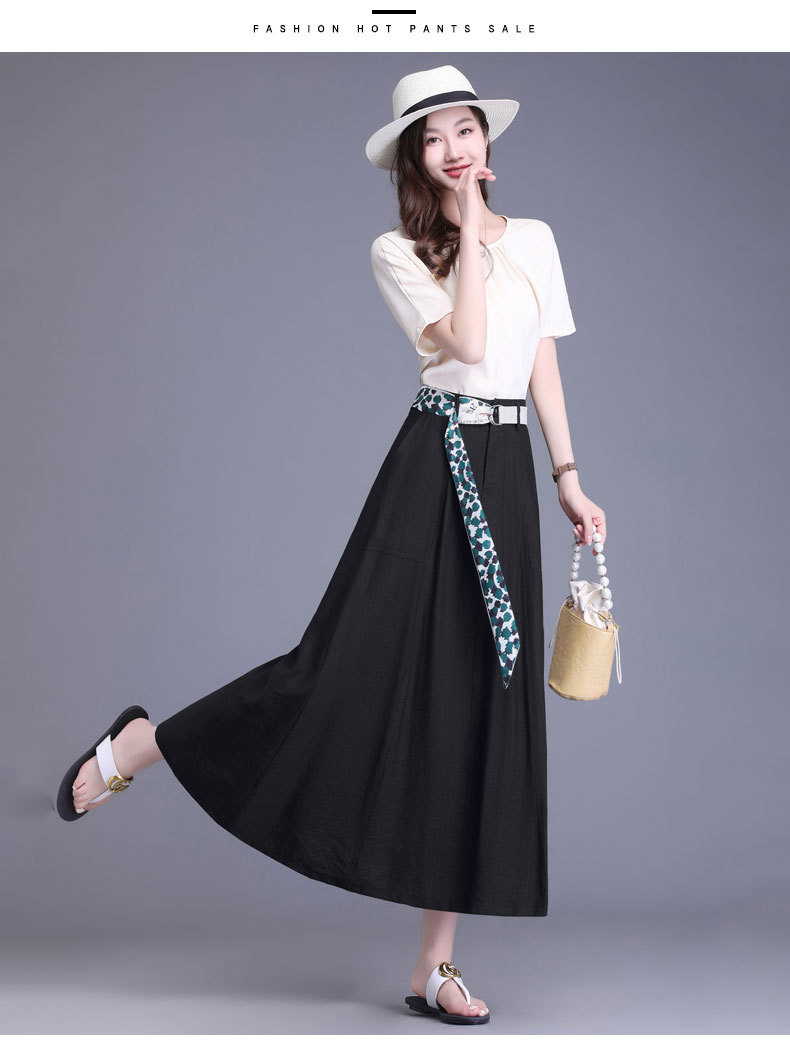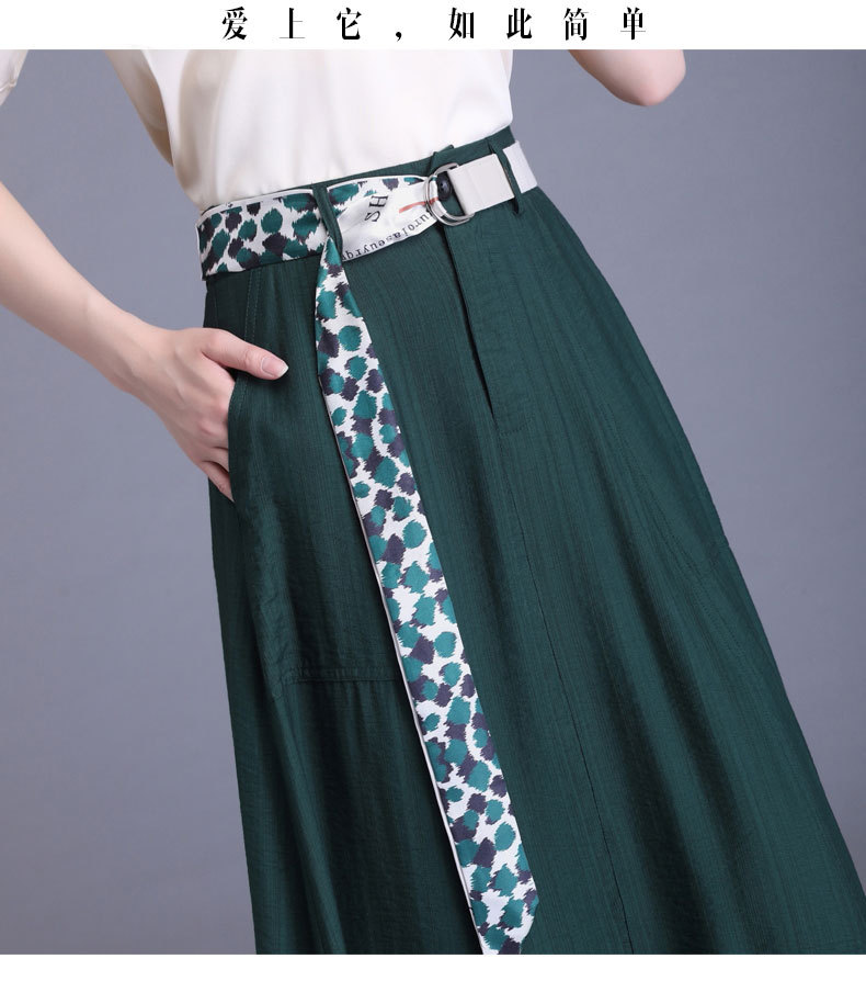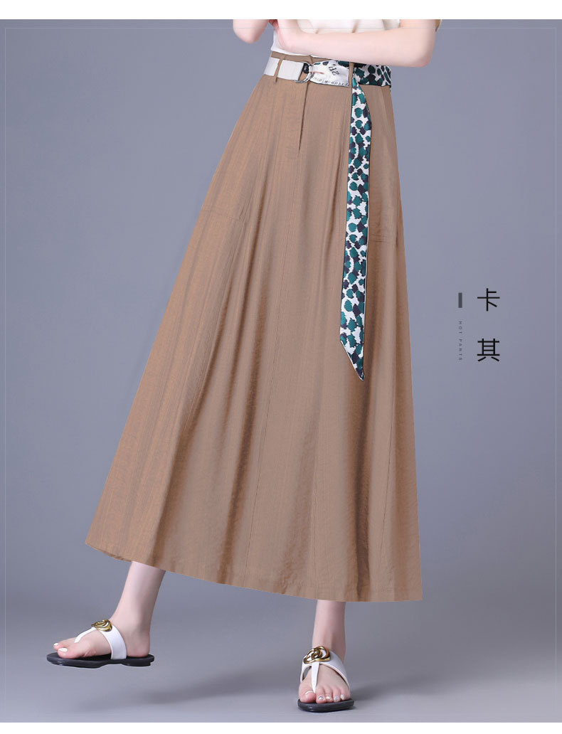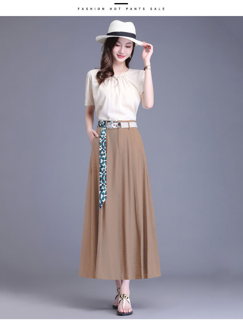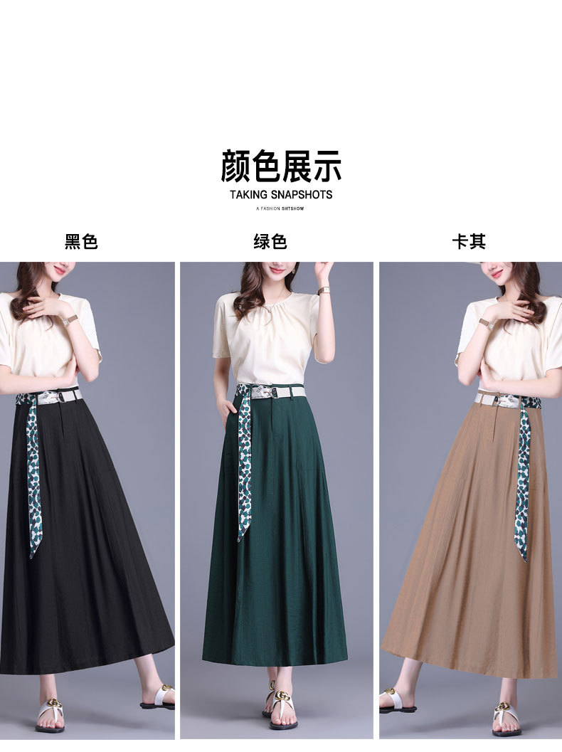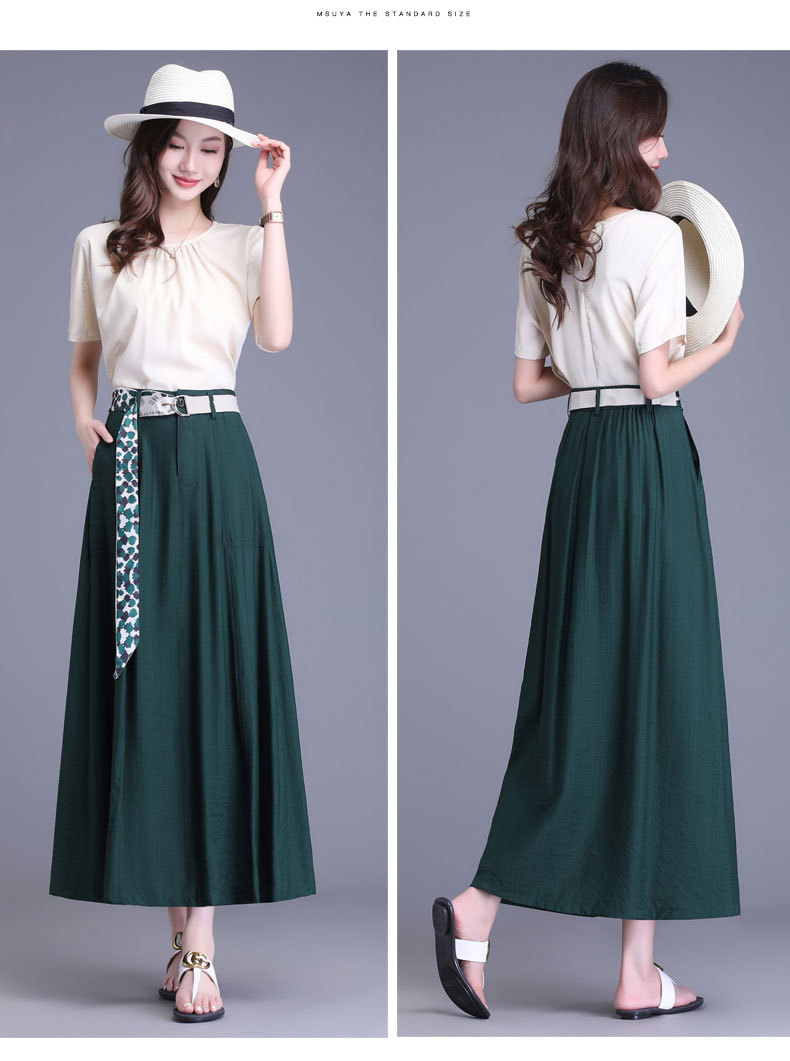 休闲时尚,夏款长款A字裙后腰松紧纯色简约气质大摆半身裙MYX-1660-L