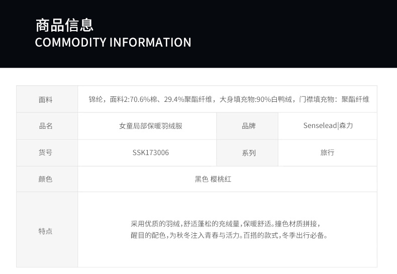 Senselead森力/女童局部保暖羽绒服 SSK173006