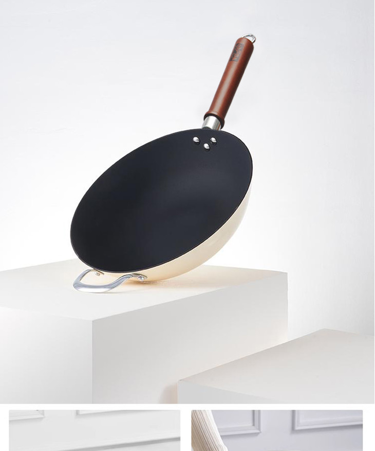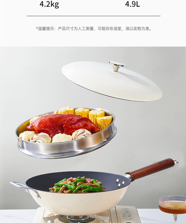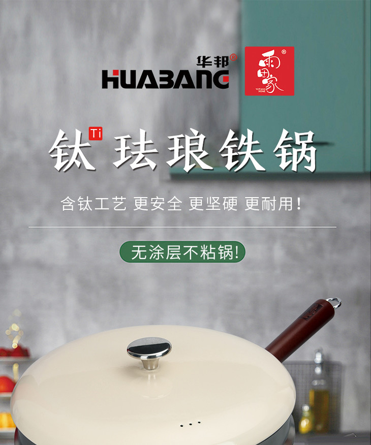 【三种材质 造就好锅】华邦·钛珐琅铁锅炒锅 | 三层材质打造 导热好 不粘锅 易清洗 不生锈 0涂层 更健康 带蒸屉32cm