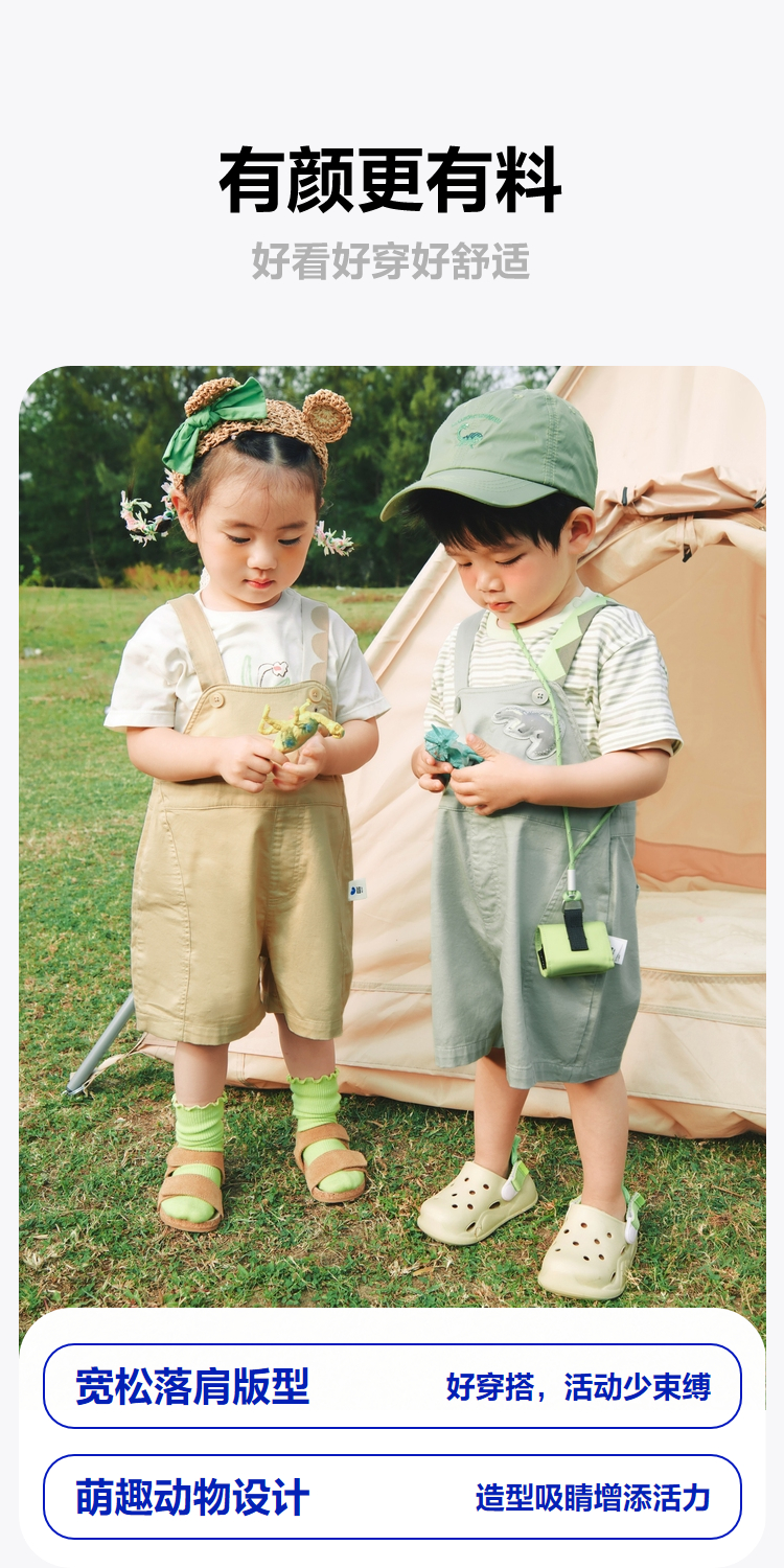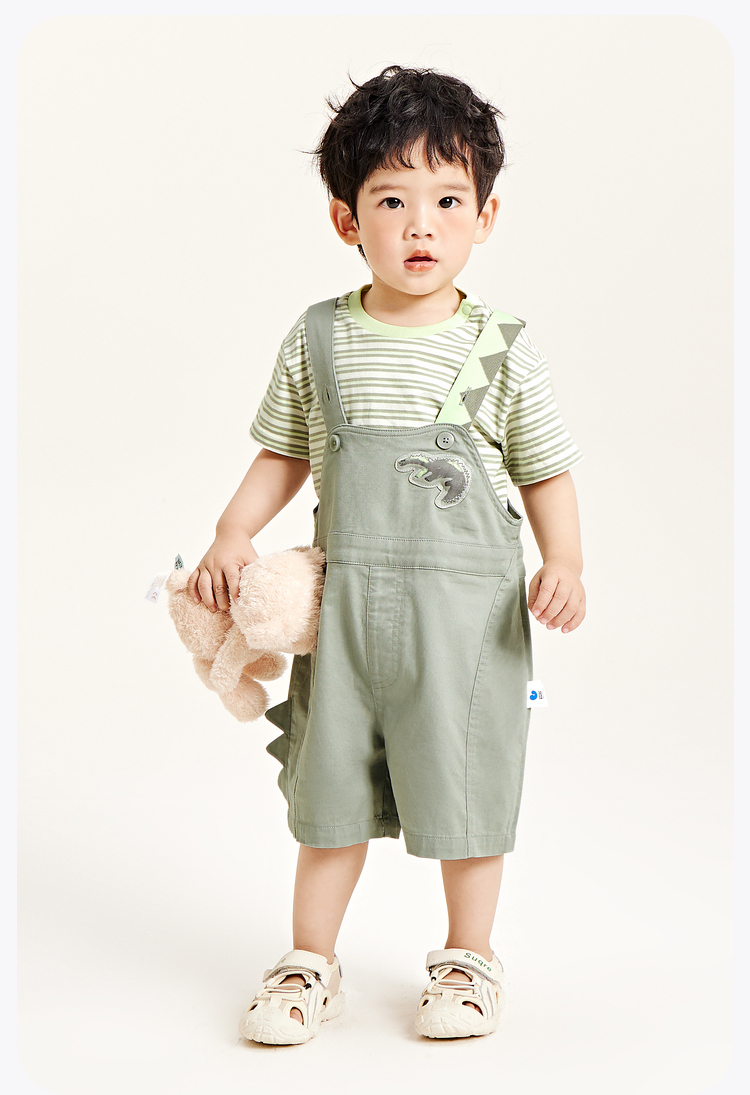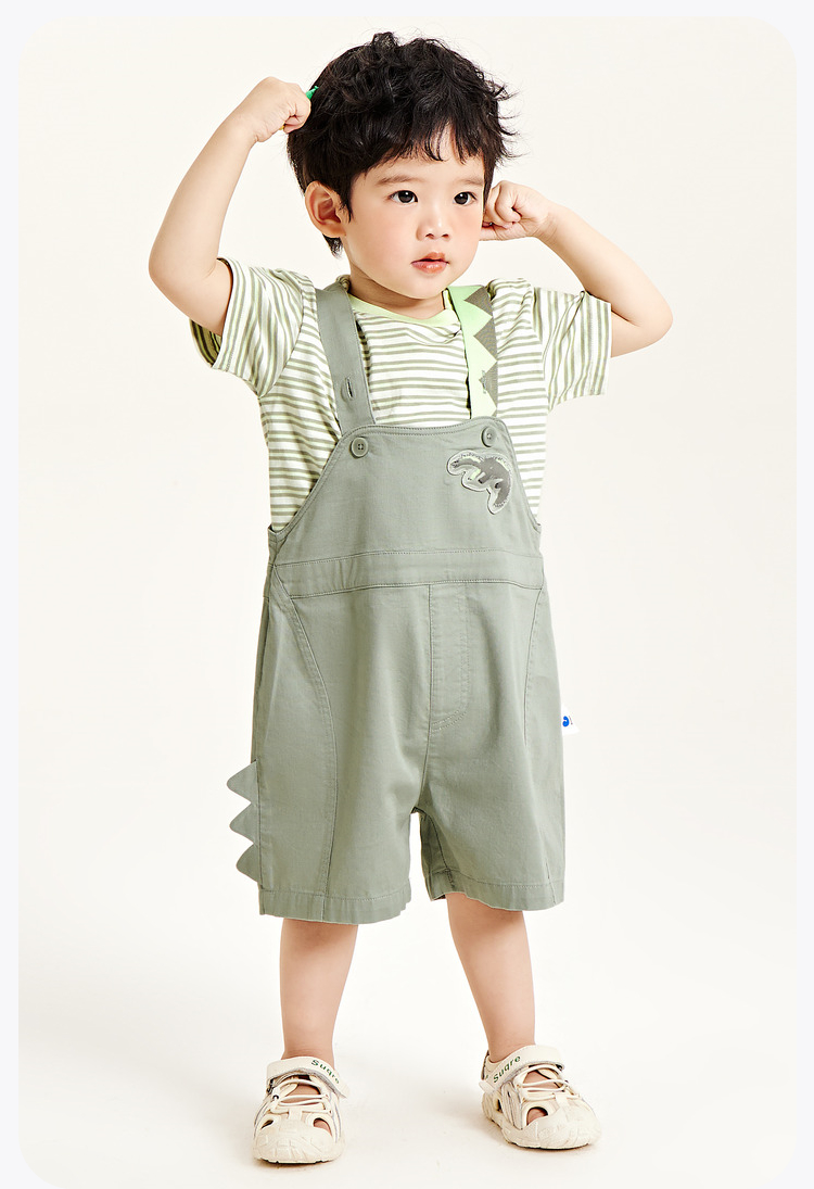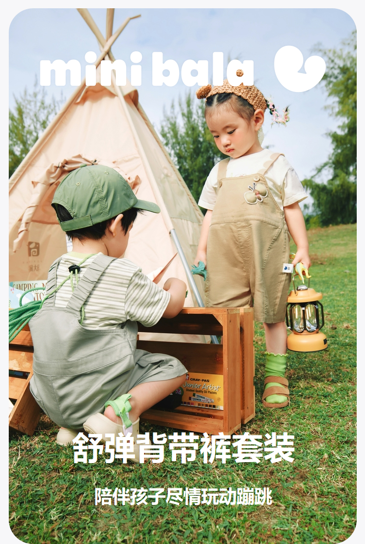 迷你巴拉男女童夏季新款柔弹T恤短裤套装柔弹清凉透气套装
