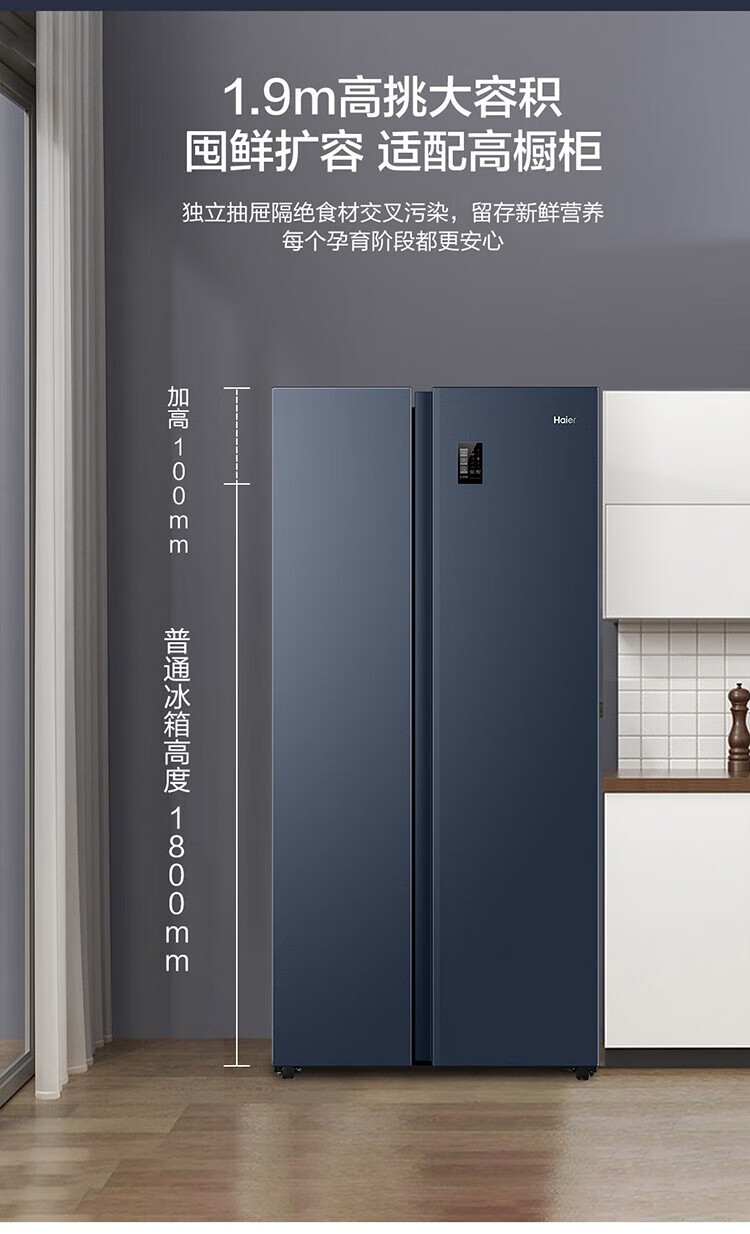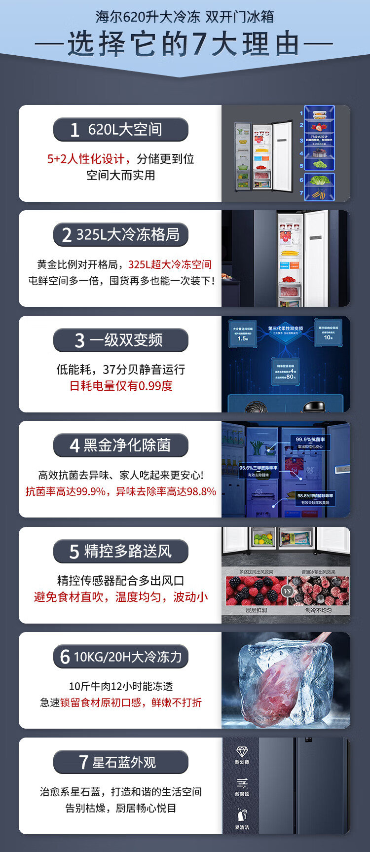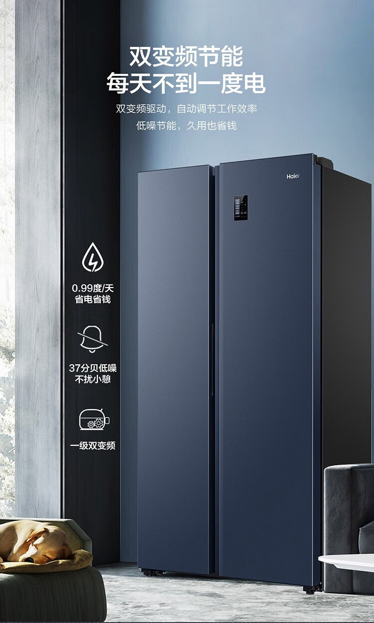 【对开门大冷冻新品】海尔620升对开门冰箱大容量双变频新一级能效风冷无霜超薄嵌入式家用电冰箱 620升
