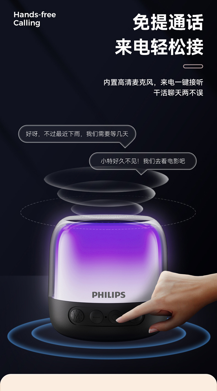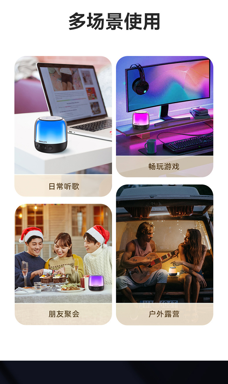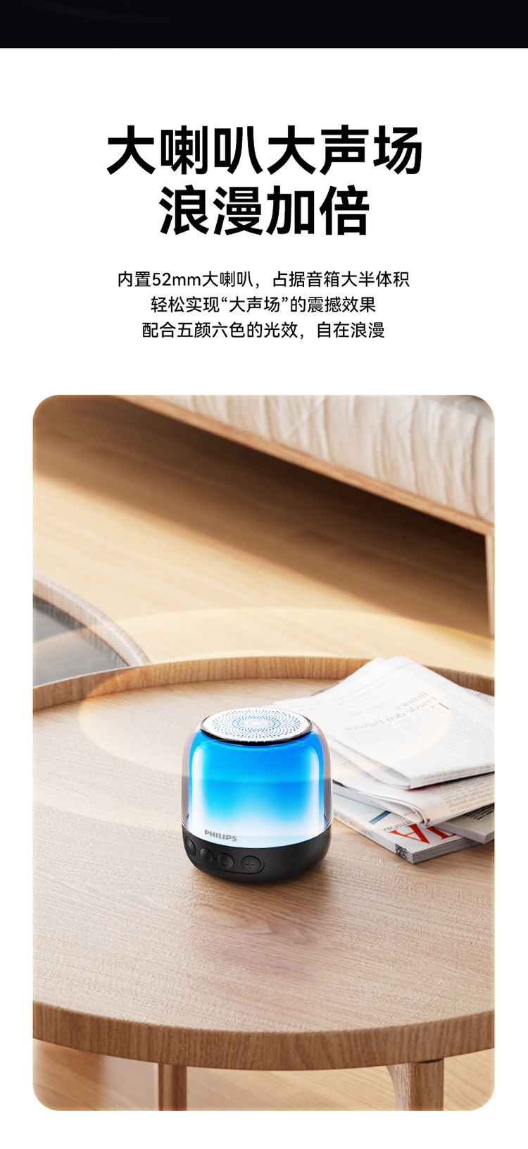 飞利浦(PHILIPS)TAS1108 蓝牙音响迷你电脑桌面音箱台式电视高音质重低音炮幻彩灯家用小音响无线车载便携式长续航 商品图5
