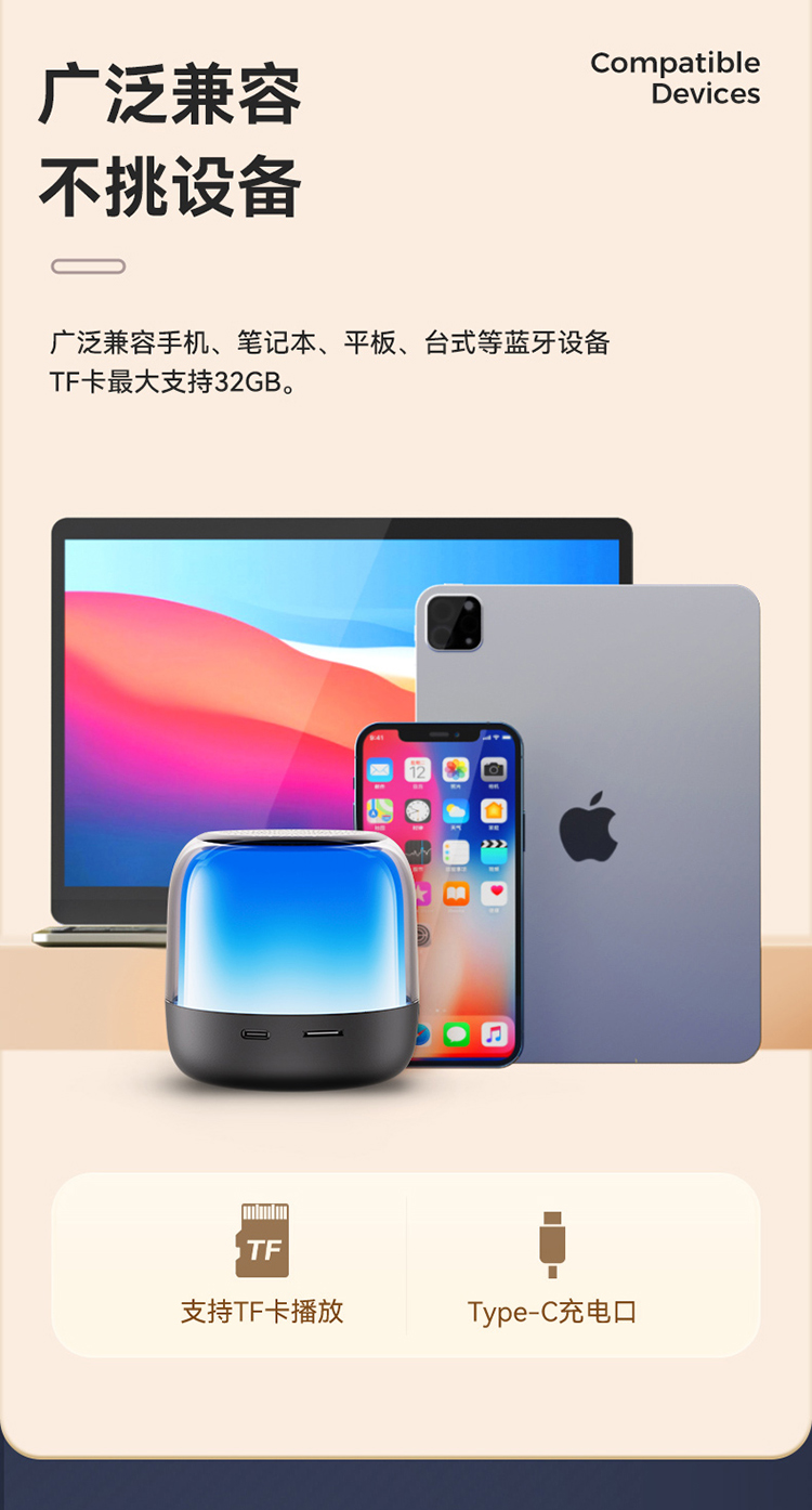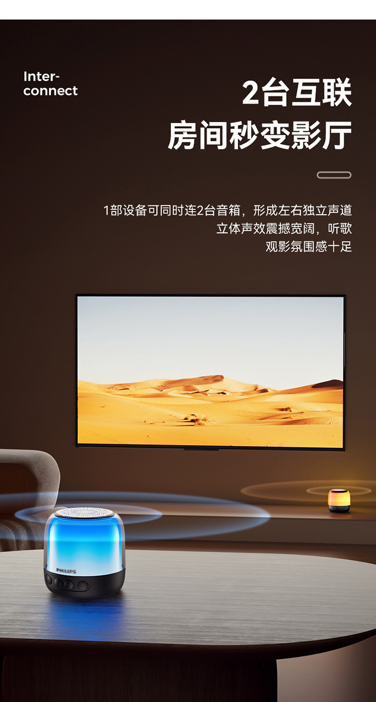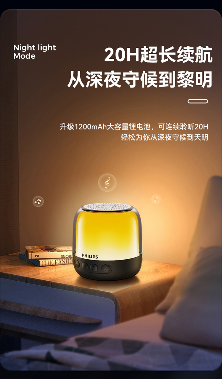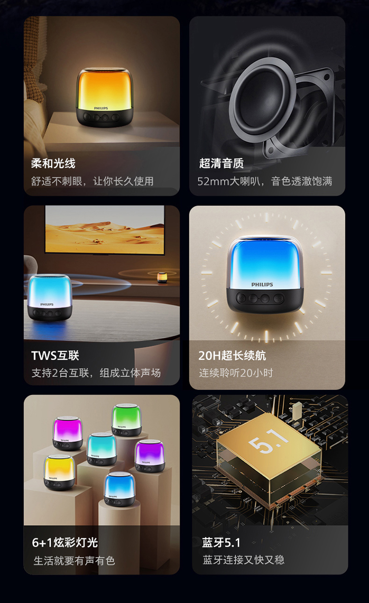 飞利浦(PHILIPS)TAS1108 蓝牙音响迷你电脑桌面音箱台式电视高音质重低音炮幻彩灯家用小音响无线车载便携式长续航 商品图5