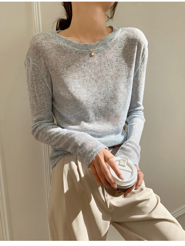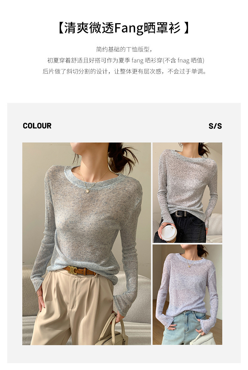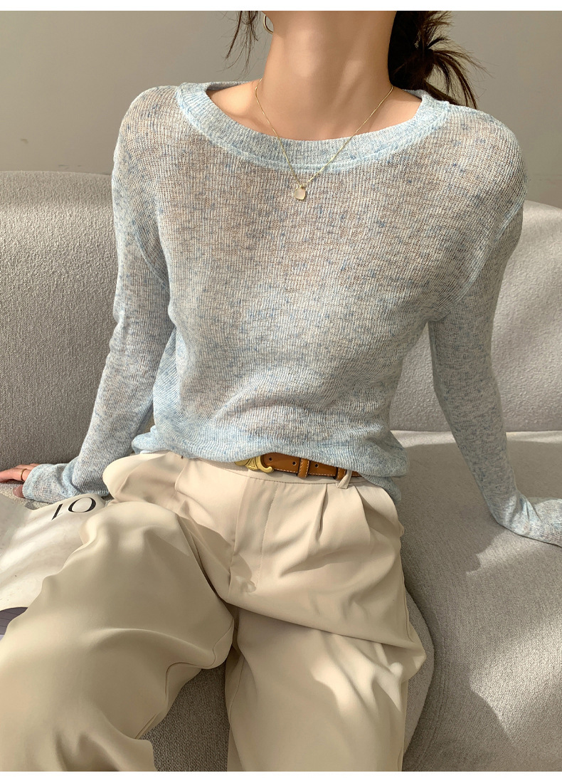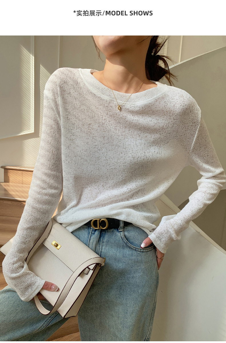 H826法式软糯微透针织衫 轻薄款亚麻圆领时尚防晒罩衫