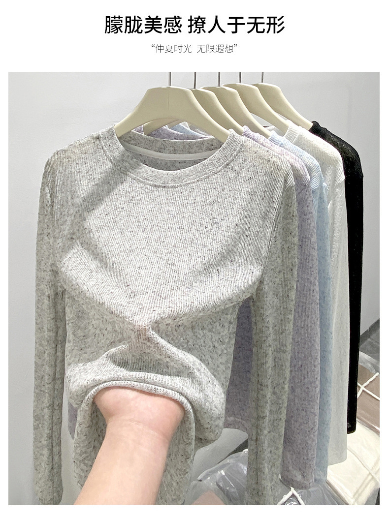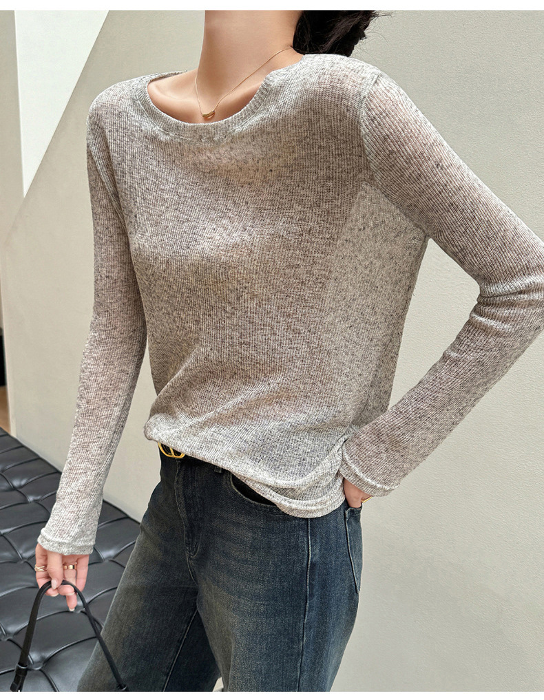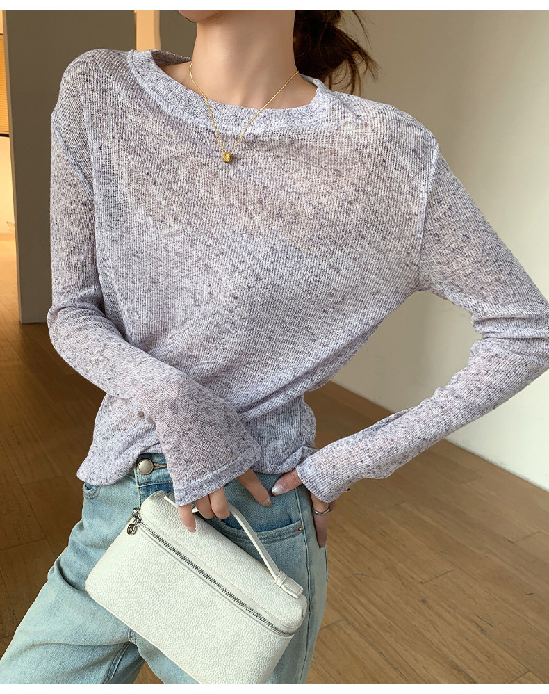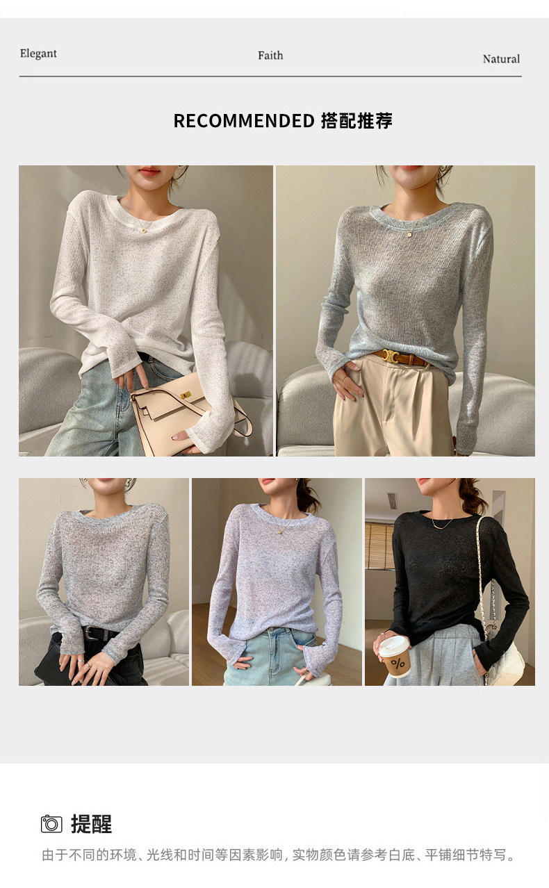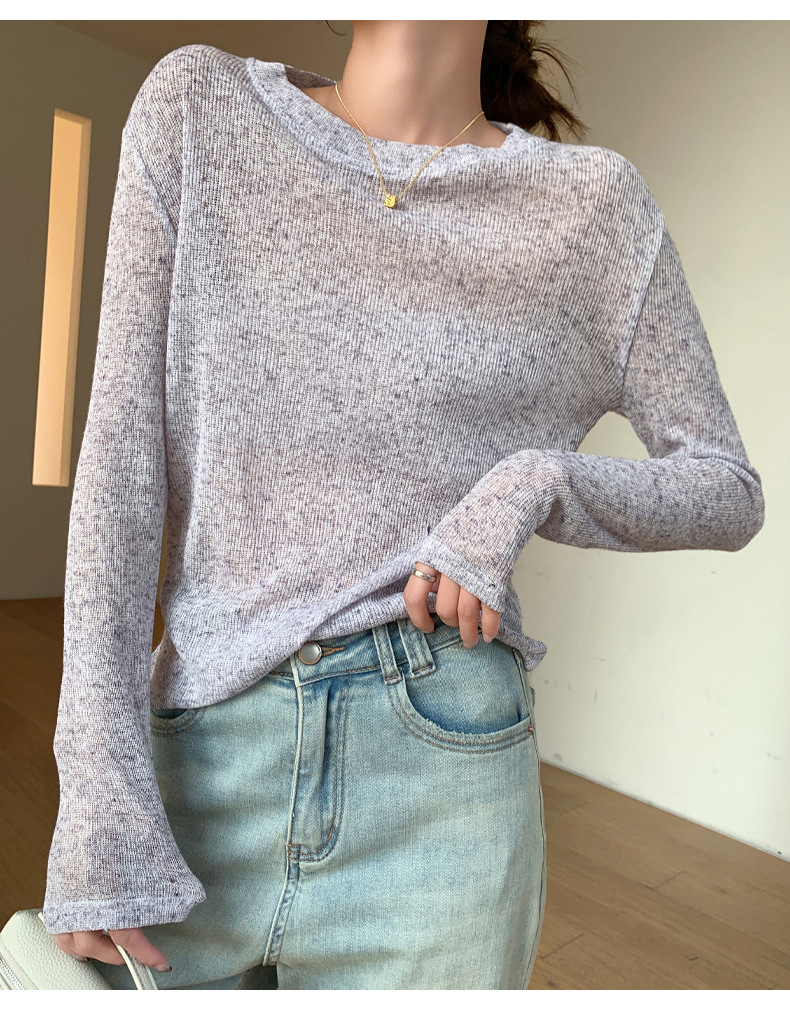 H826法式软糯微透针织衫 轻薄款亚麻圆领时尚防晒罩衫