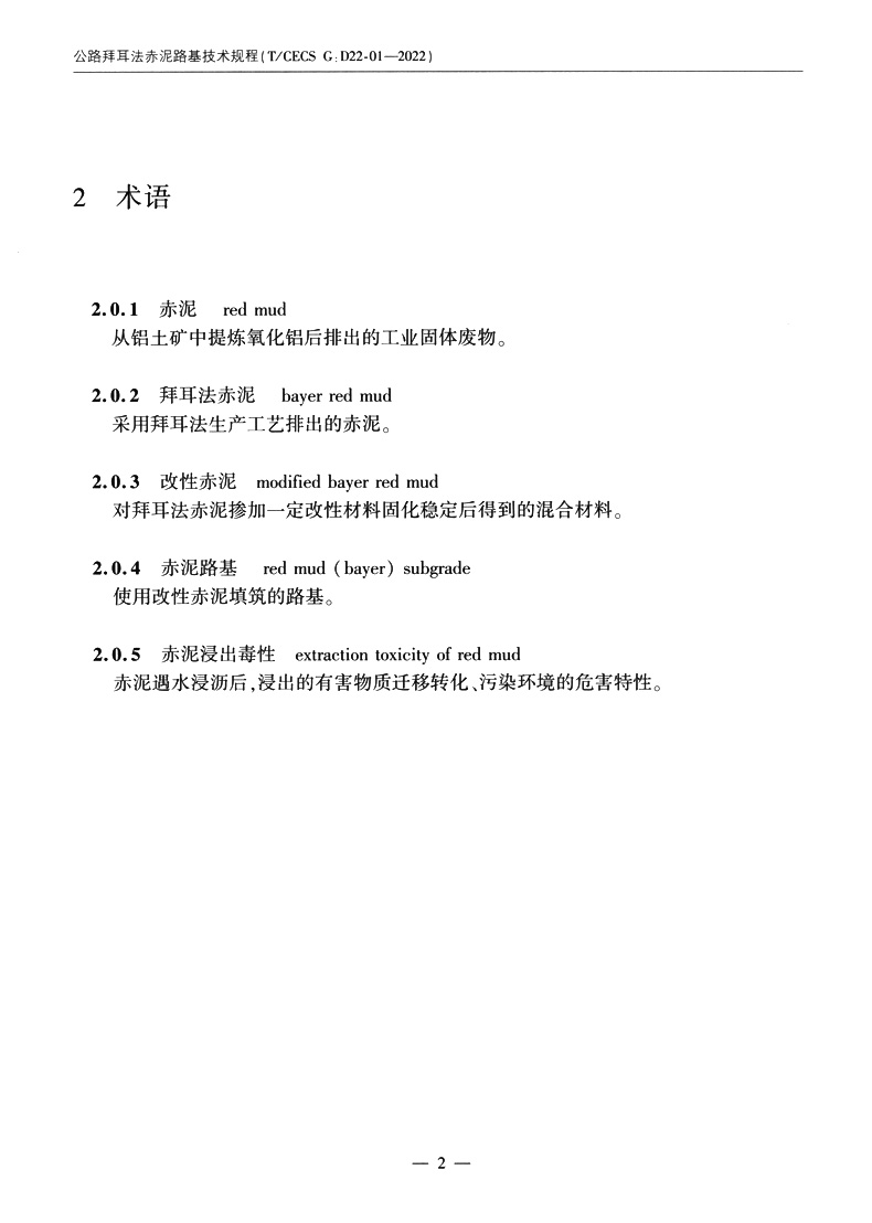 公路拜耳法赤泥路基技术规程(T/CECS G:D22-01—2022)