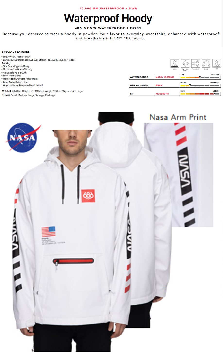 686 21-22 新款 Waterproof Hoody男款套头雪服 NASA联名款