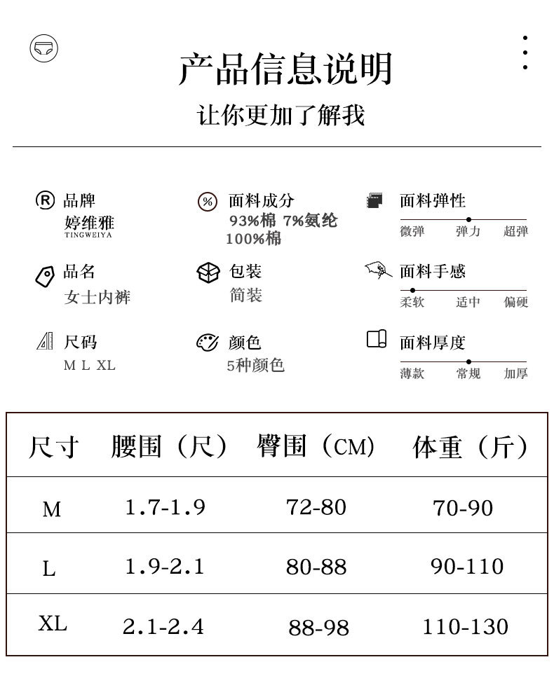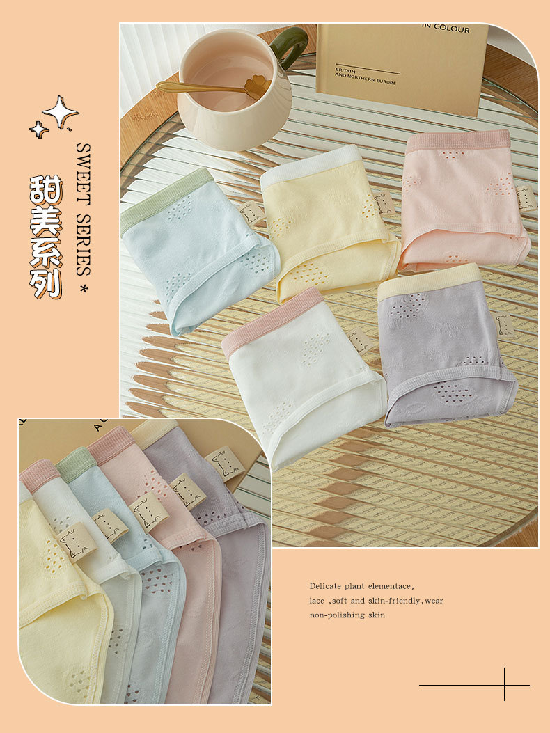 【YW】无忧购5条装纯棉网眼透气中腰内裤Y06(预售3-7天发货)