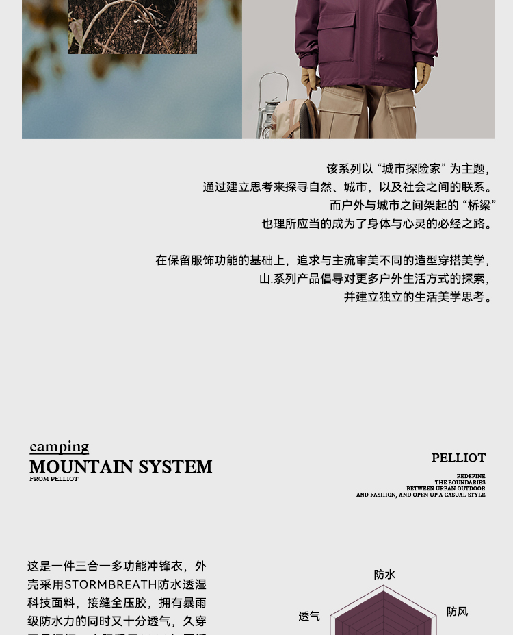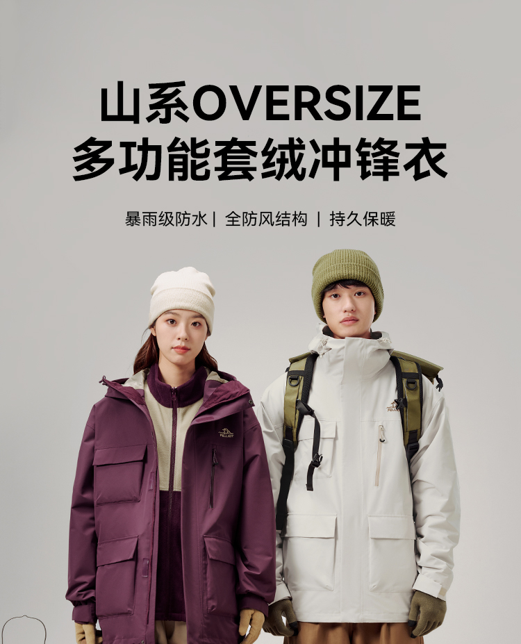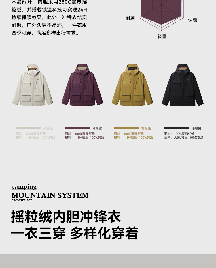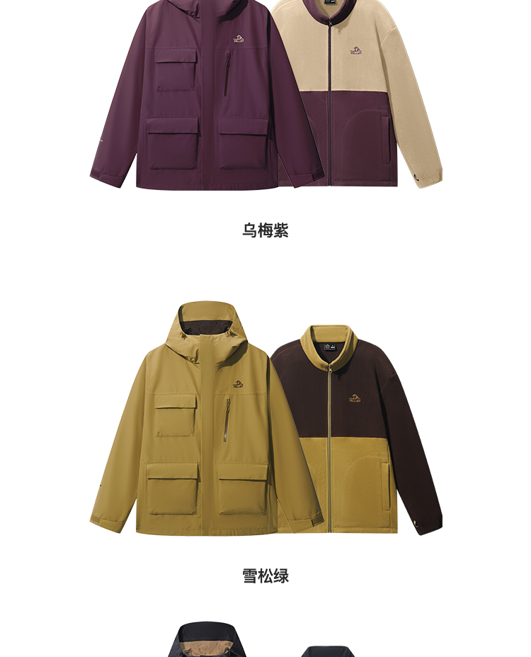 【山系】伯希和户外三合一冲锋衣男25新款摇粒绒内胆可拆卸外套女