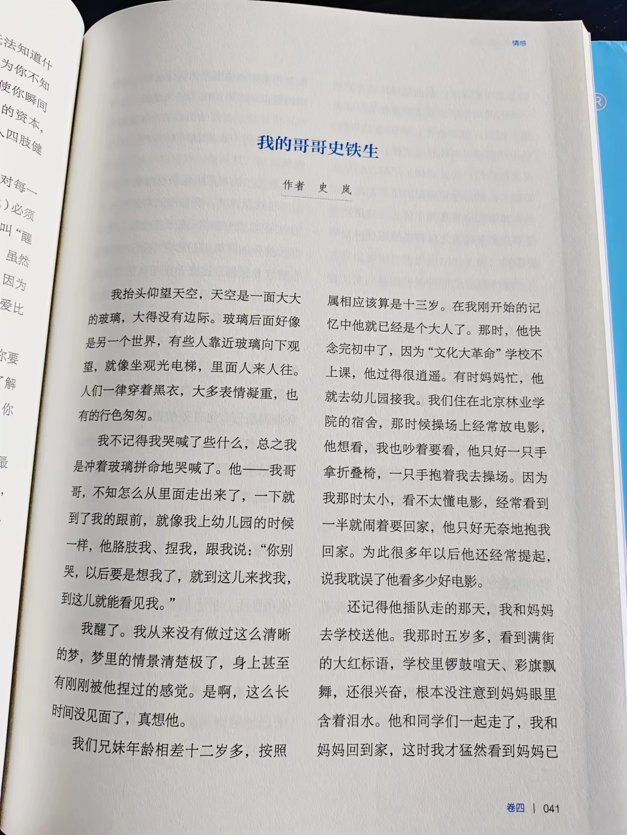 我学生时代很喜欢史铁生,曾被他和母亲的感情所打动,在名家名篇里刚巧看到了他妹妹写的关于他的记忆,特别感动,忍不住分享给友友们。