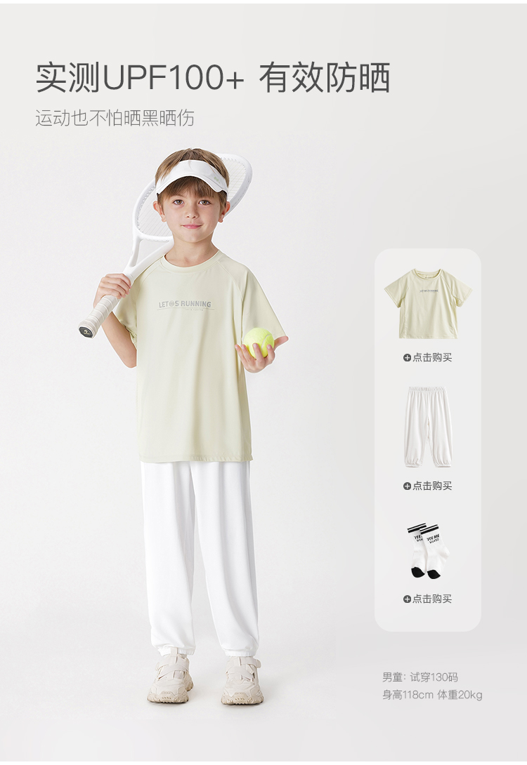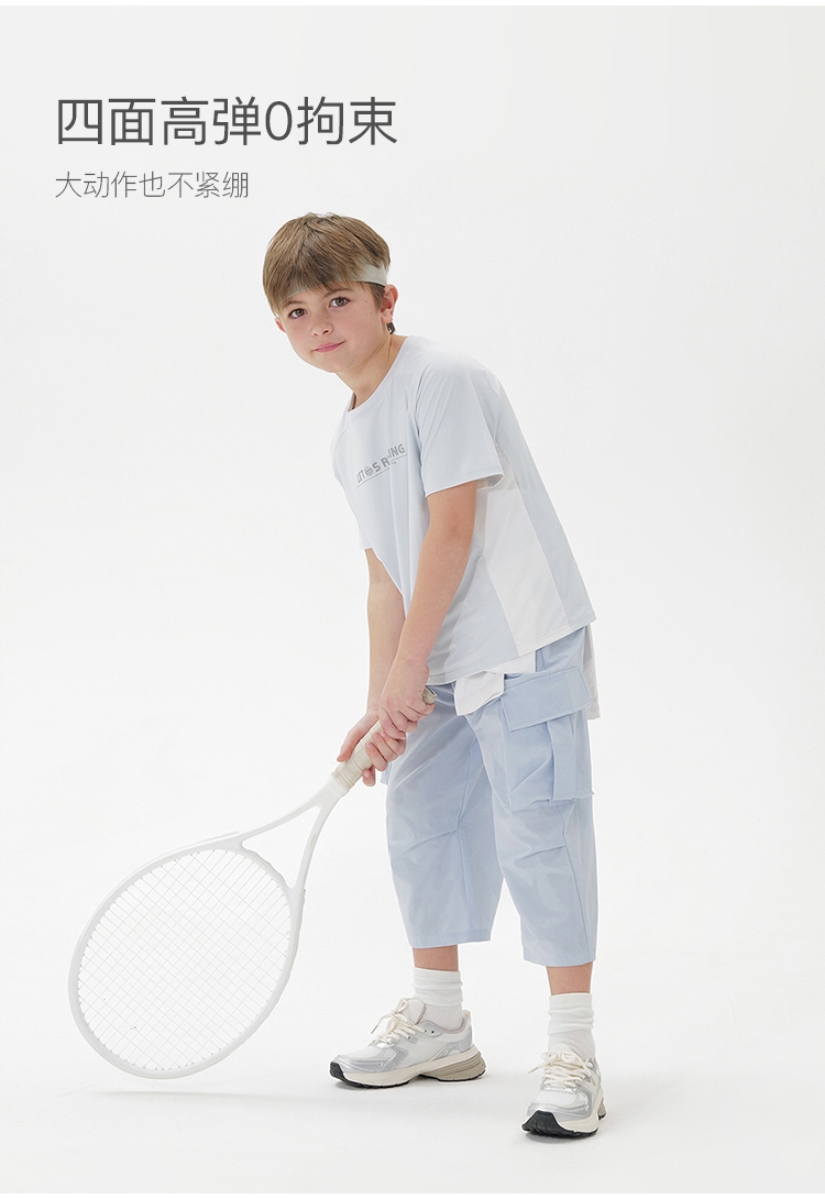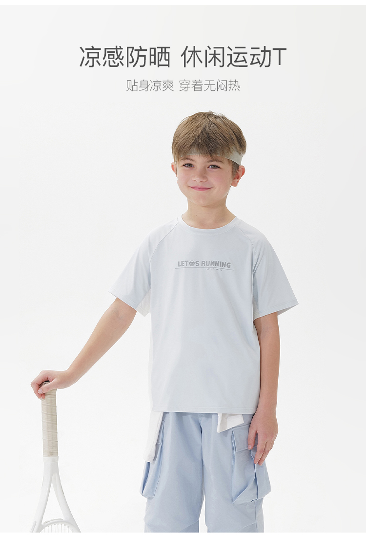 [凉感防晒]马克珍妮男童网眼拼接休闲运动短袖T恤夏装新款240327