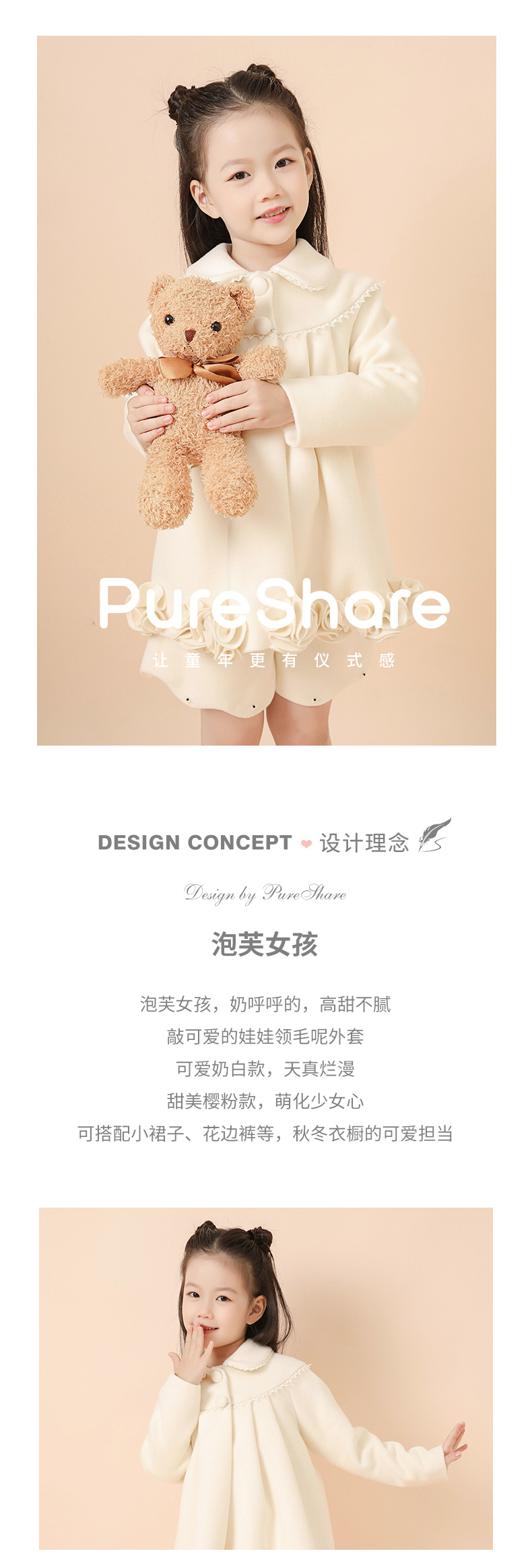 非质量问题不退换 PureShare女童公主裙新款时髦加厚毛呢秋冬款连衣裙-泡芙女孩