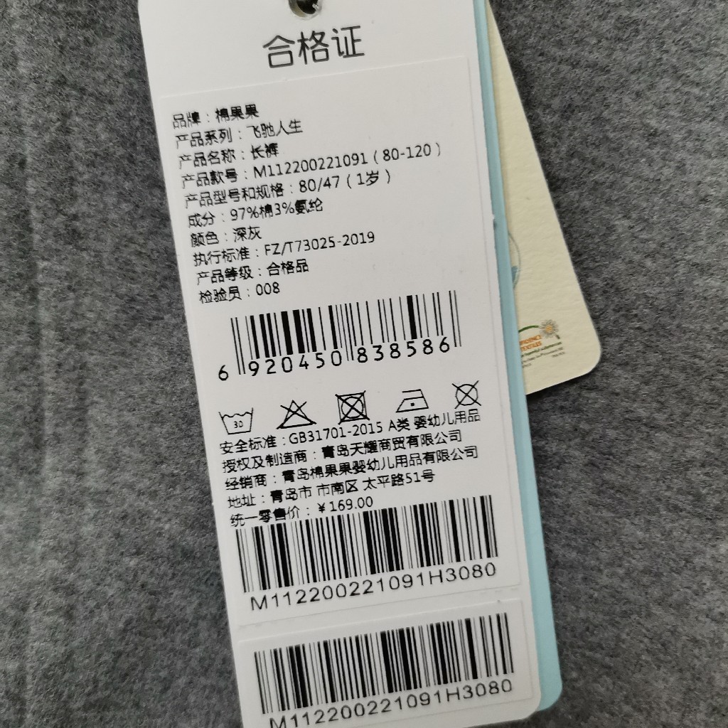 商场同款棉果果春季男童小毛圈针织运动长裤裤子M112200222095