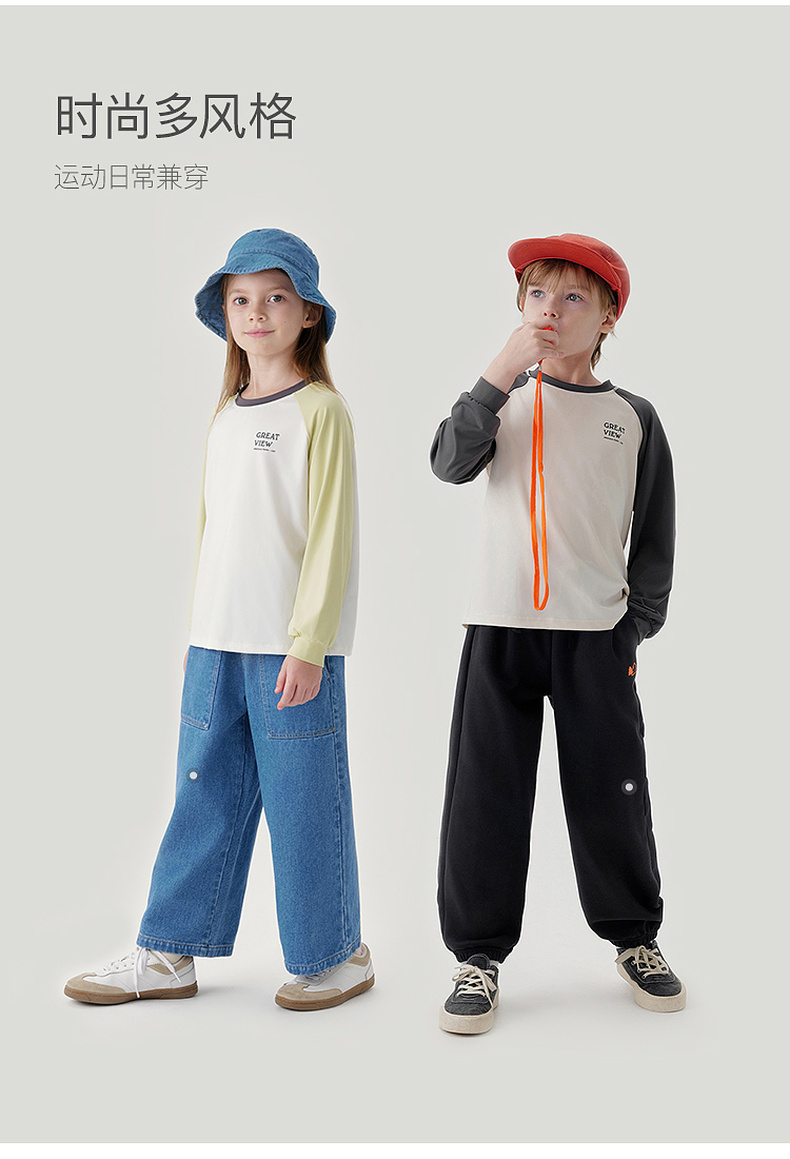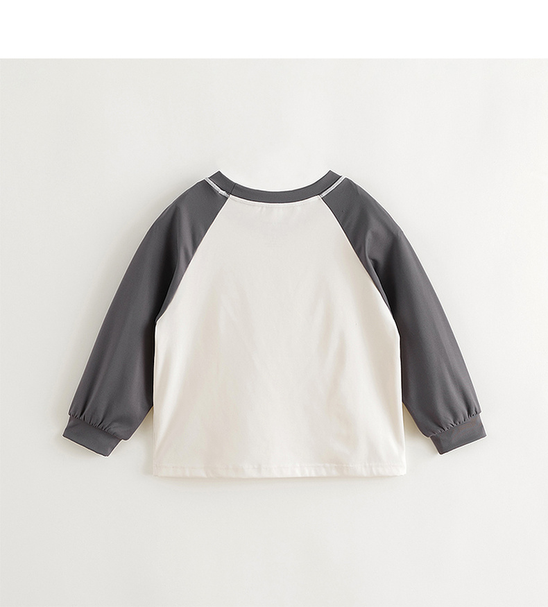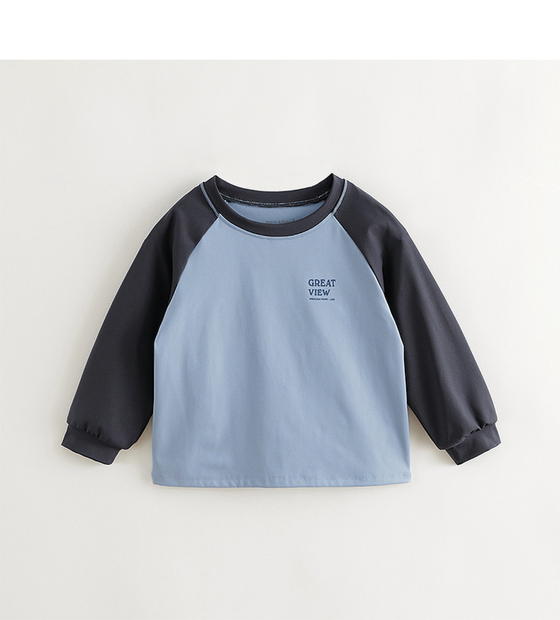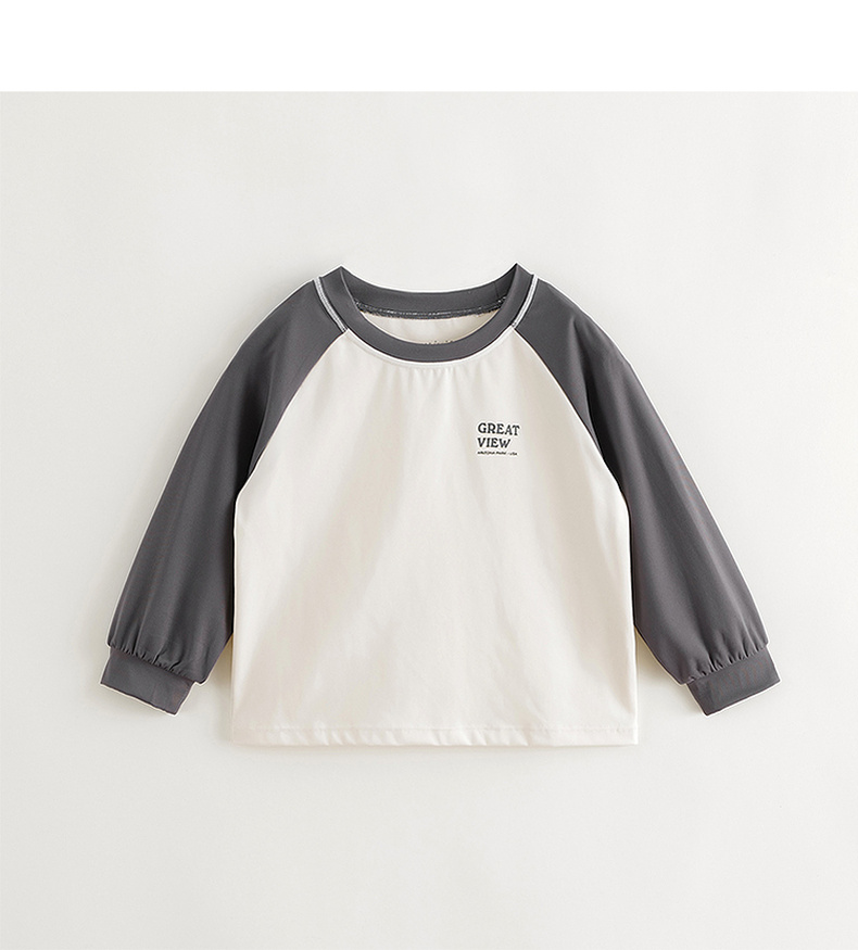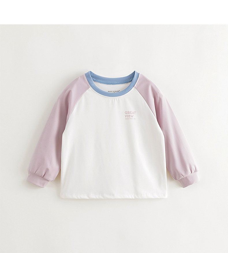 马克珍妮男女童弹力撞色字母运动T恤儿童宽松上衣秋装新款241125