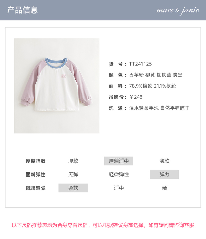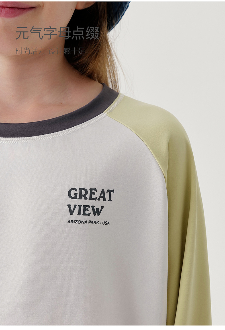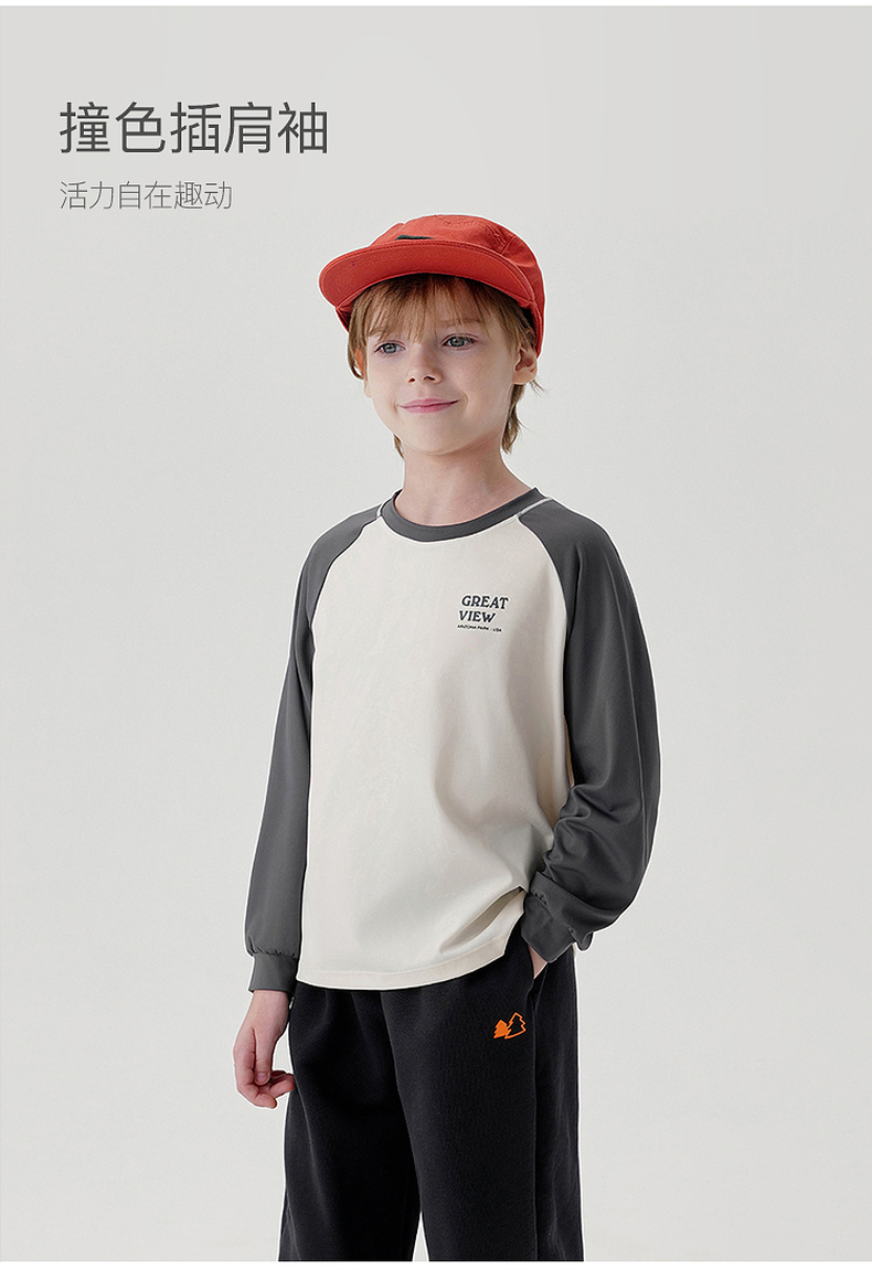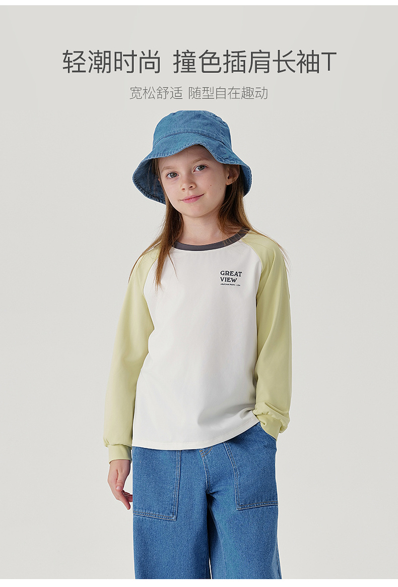 马克珍妮男女童弹力撞色字母运动T恤儿童宽松上衣秋装新款241125