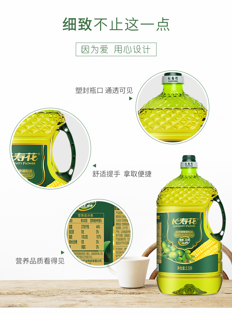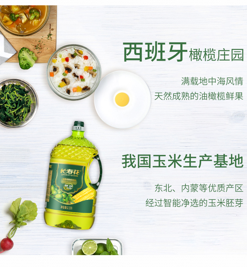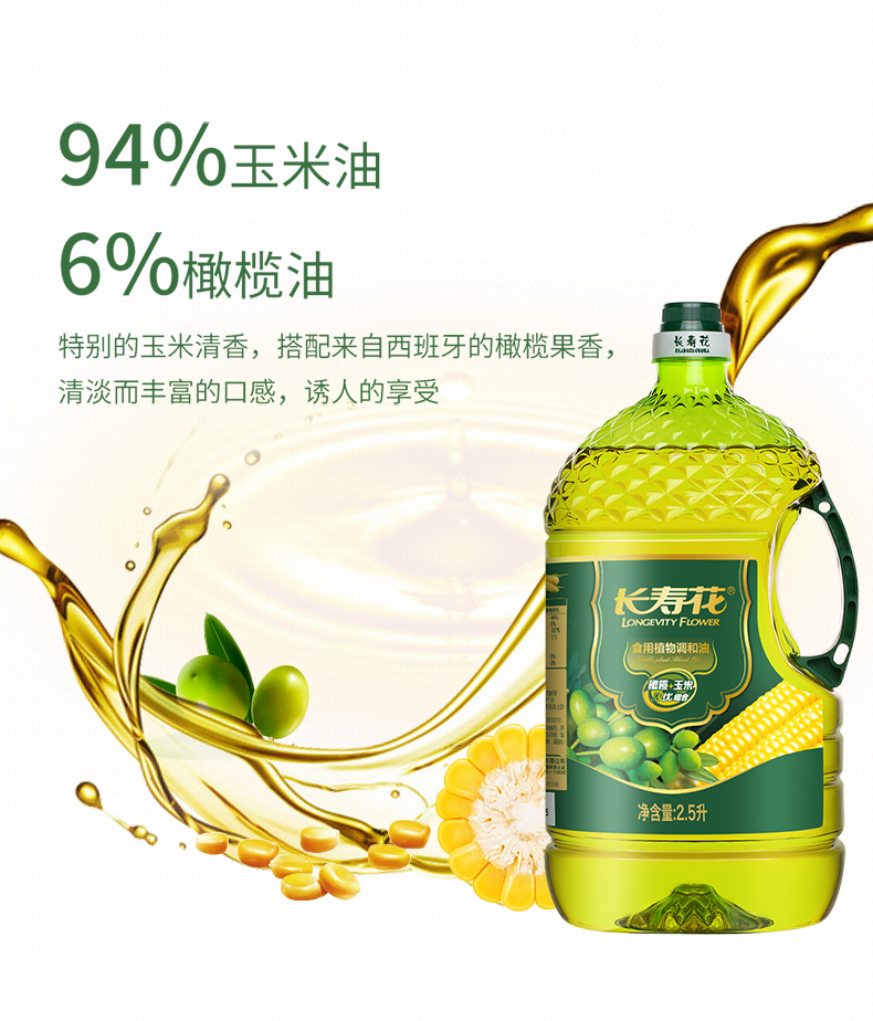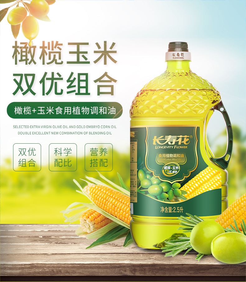 长寿花橄榄玉米调和油2.5L健康食用油植物油压榨玉米油橄榄油