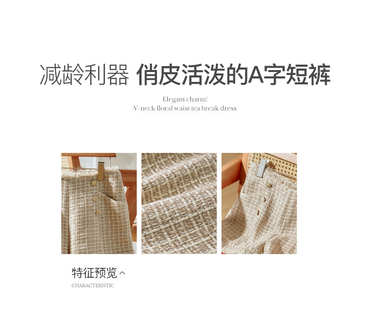 欧芮儿高腰短裤女欧芮儿春装新款宽松显瘦港味直筒休闲裤坠感阔腿裤