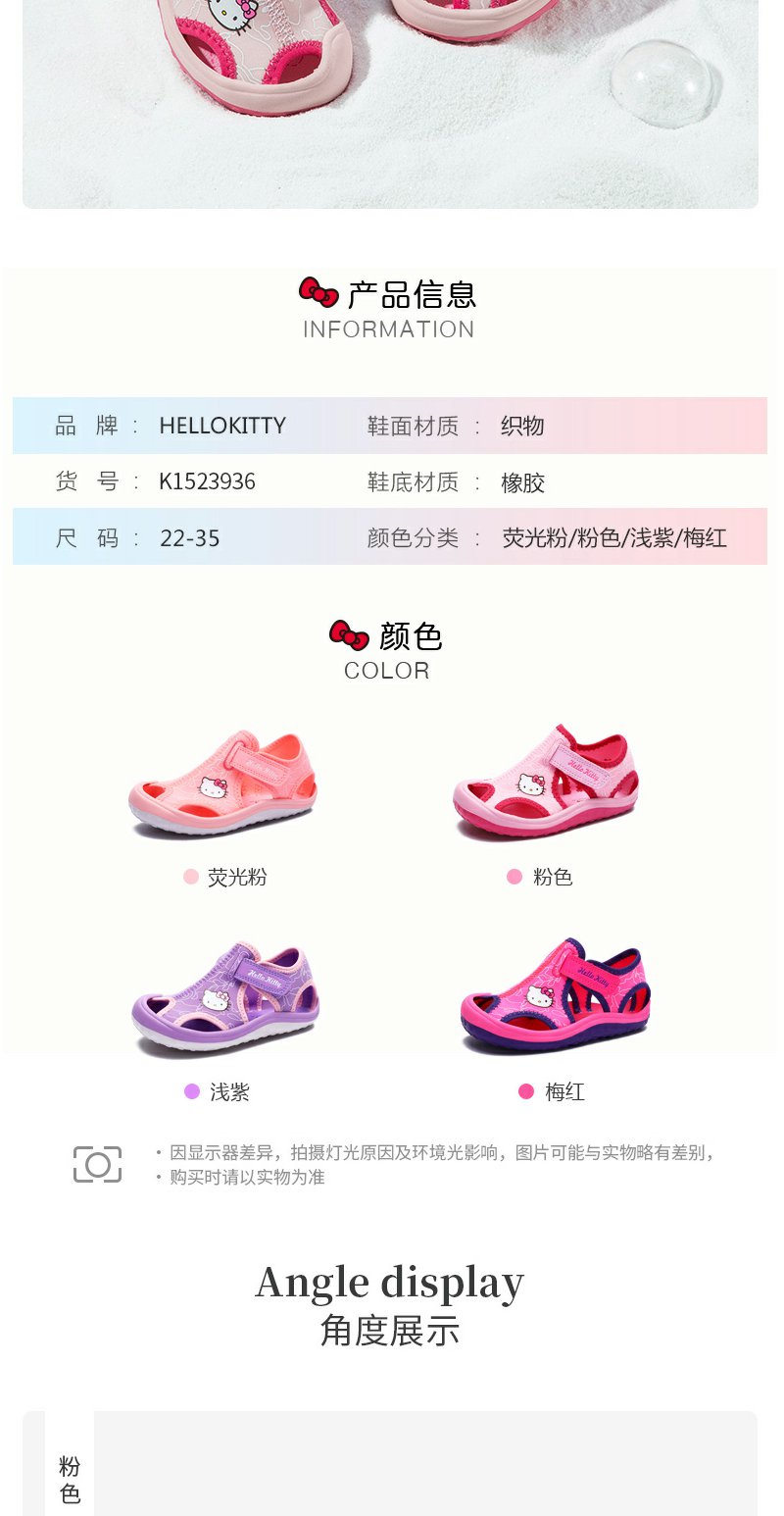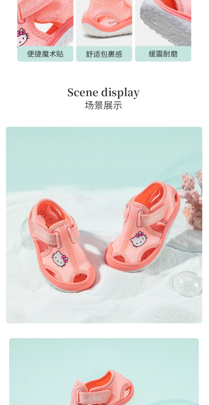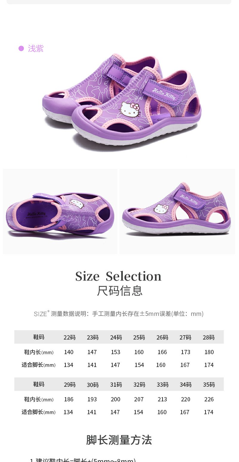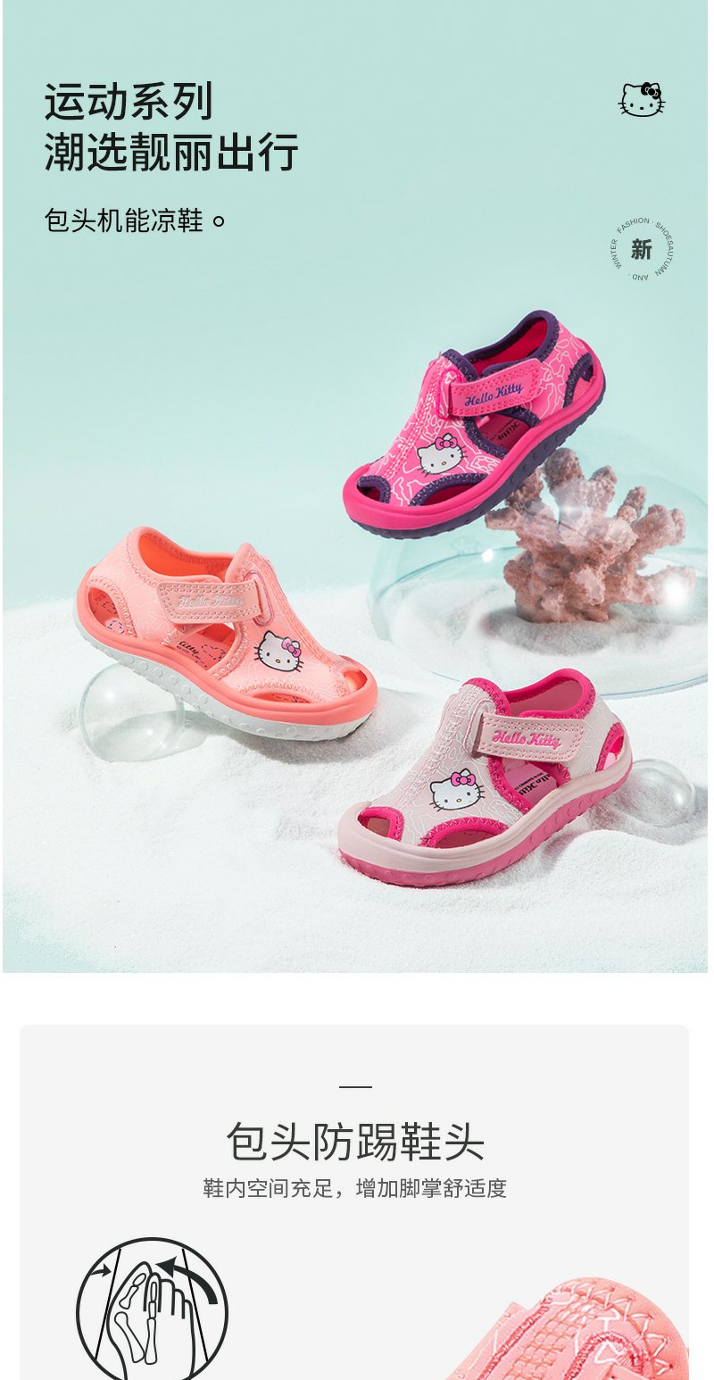 HelloKitty童鞋女童凉鞋夏季新款女孩包头公主鞋小学生沙滩凉鞋22-35 K1523936A
