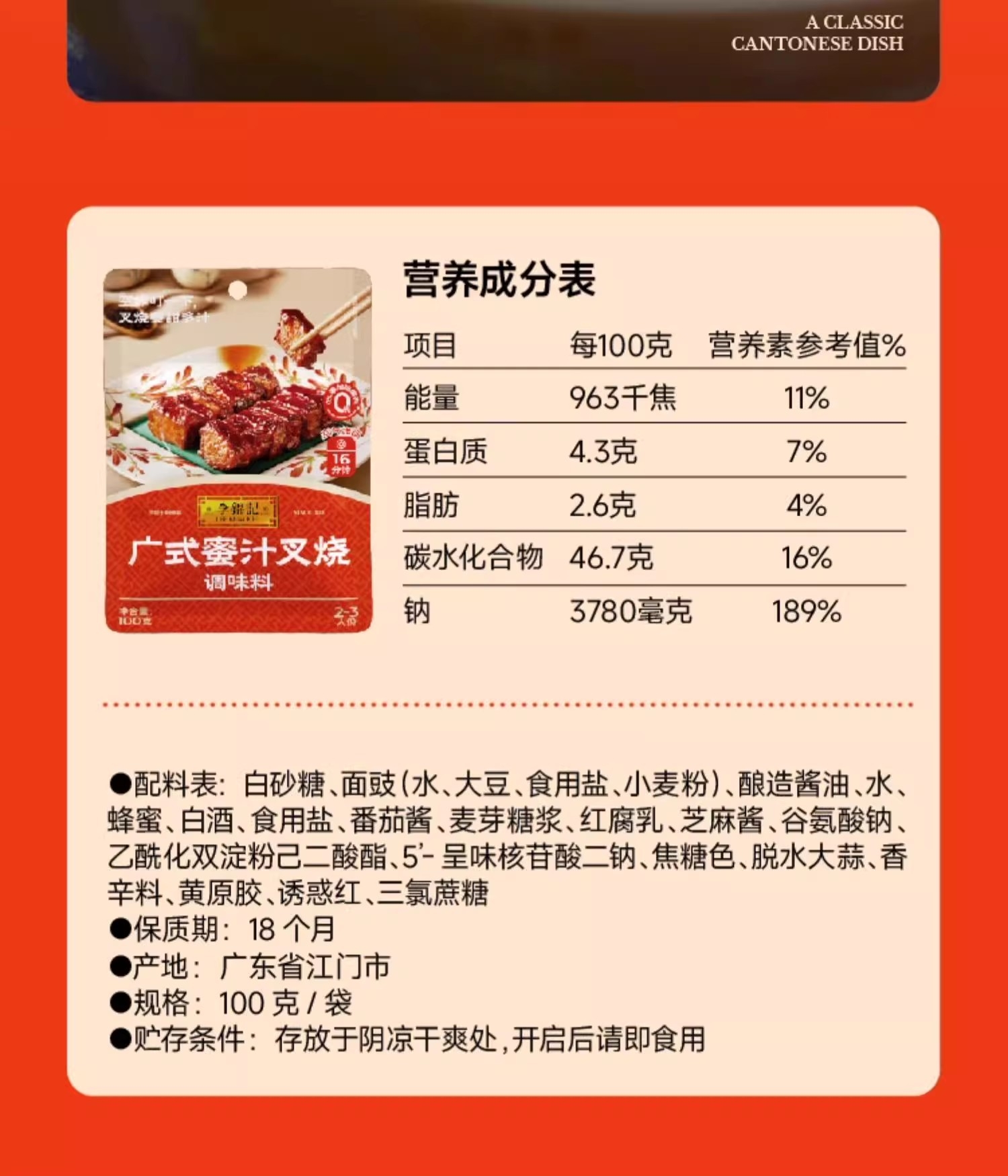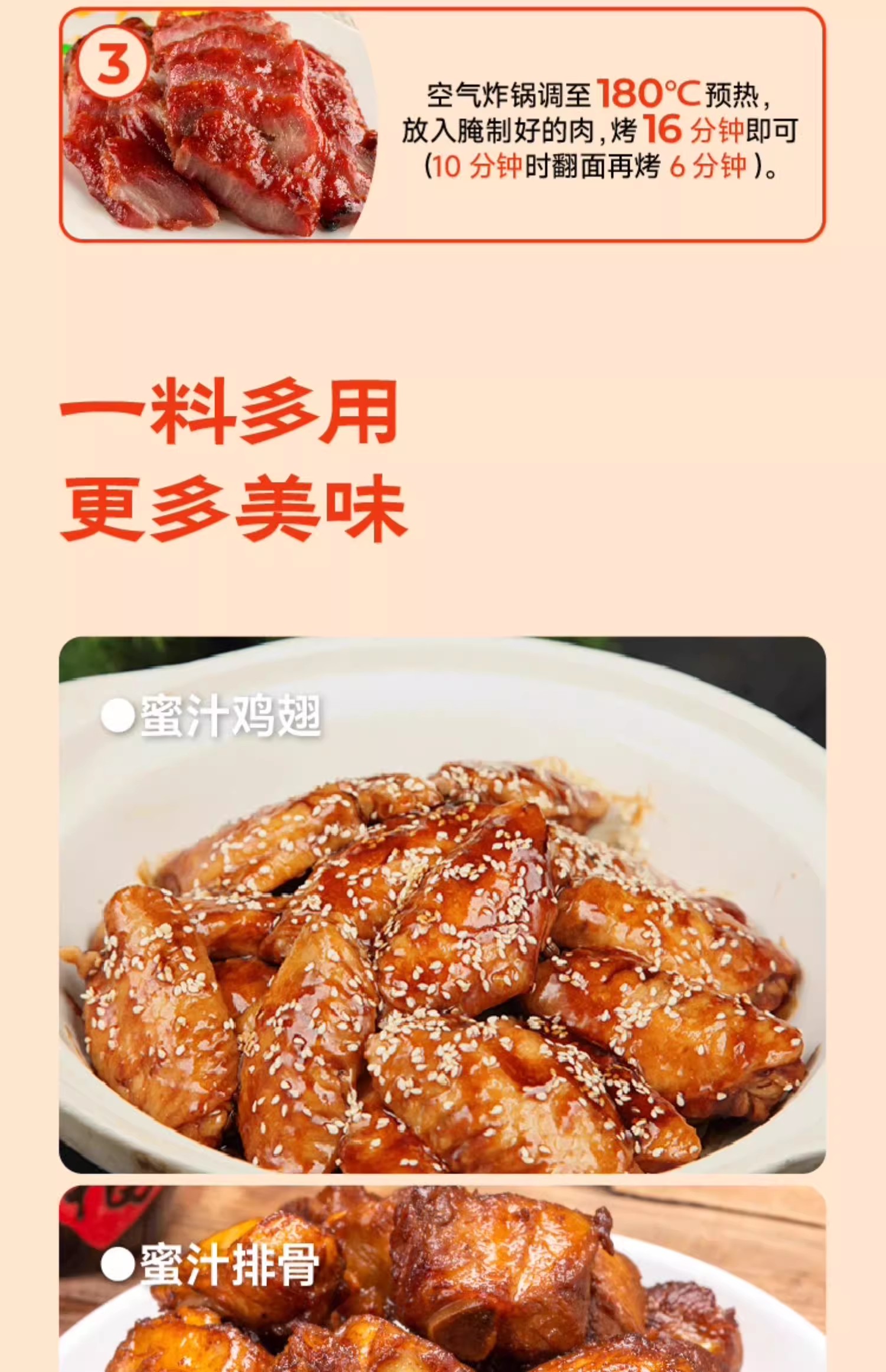100g 李锦记广式蜜汁叉烧调味料 空气炸锅酱料调味料 蜜汁鸡翅排骨叉烧料