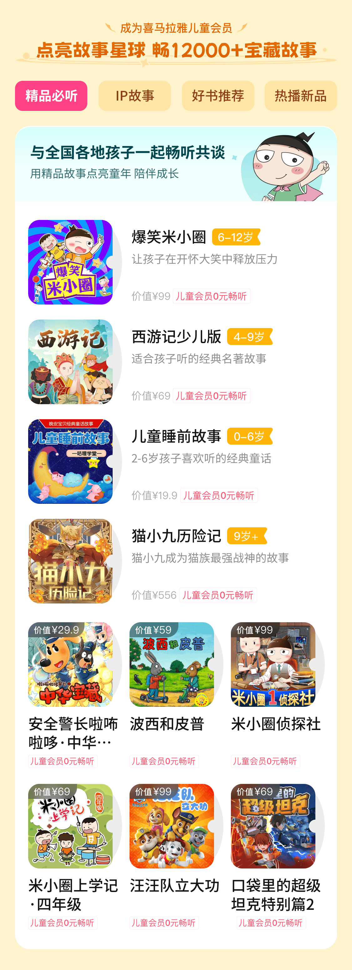 【10-15--11-18双十一限时活动】喜马拉雅儿童会员|精选优质内容,人气新品 🤔一起快乐成长🥰喜马拉雅儿童陪伴成长每一天