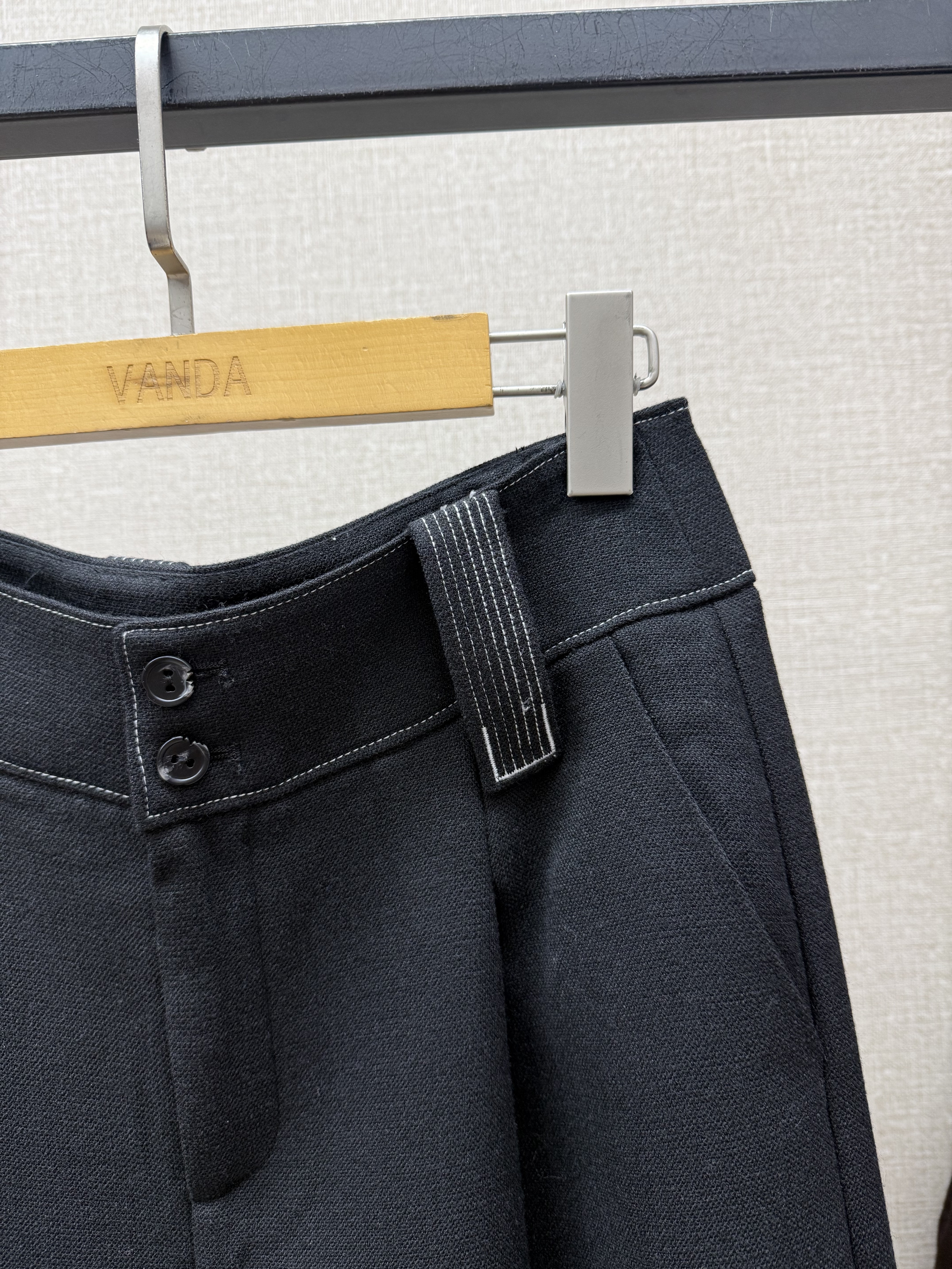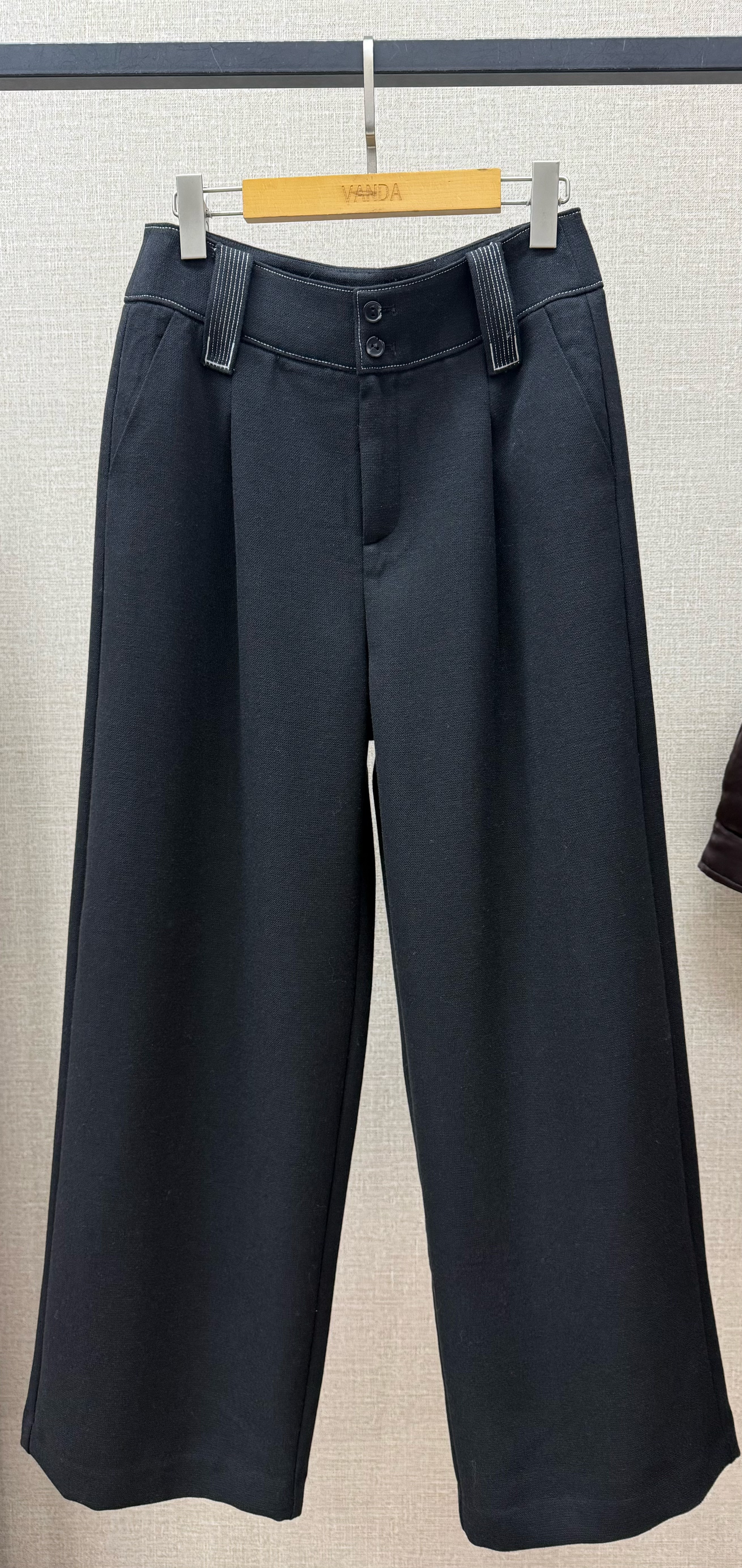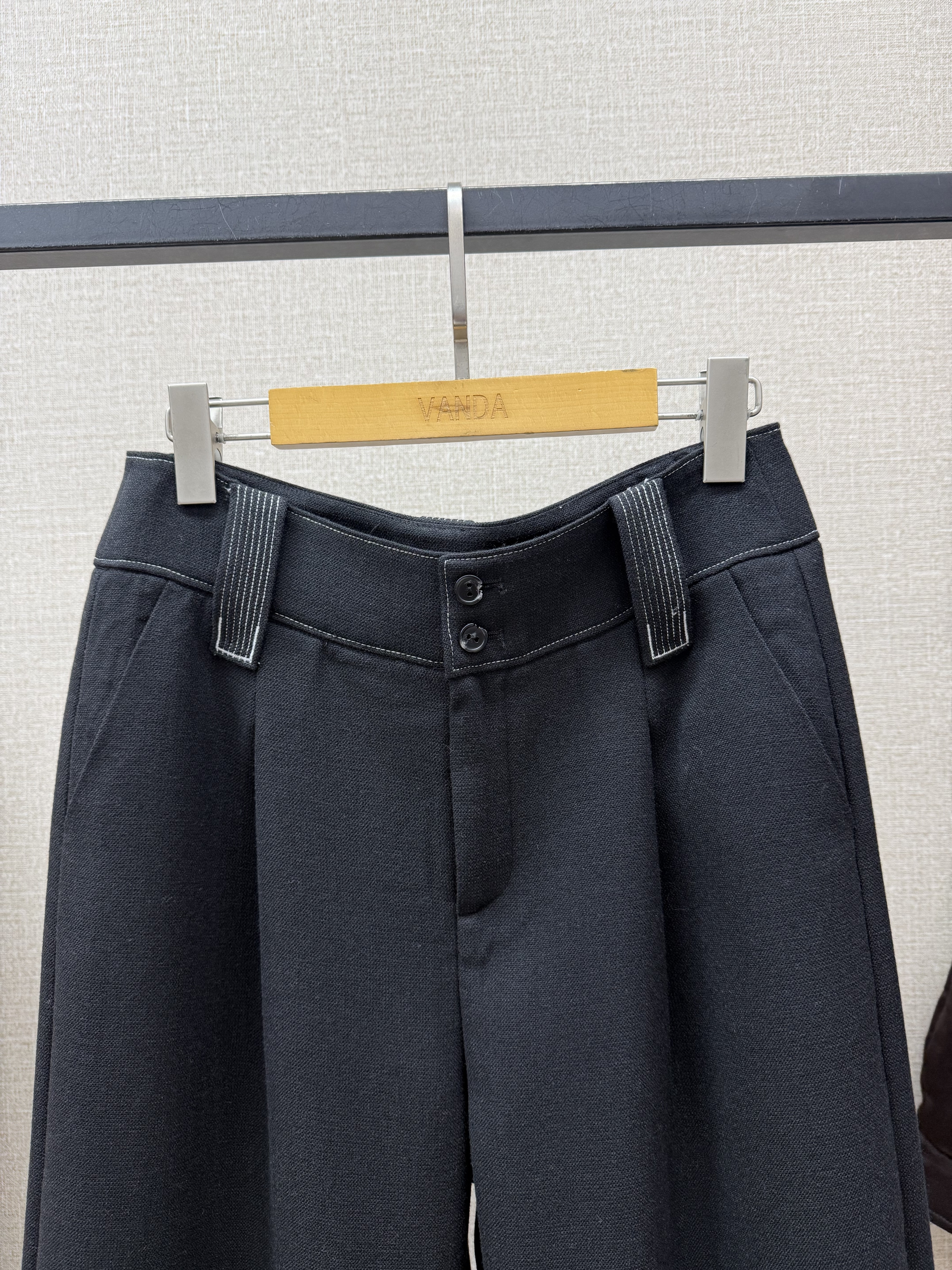 撞色羊毛阔腿裤