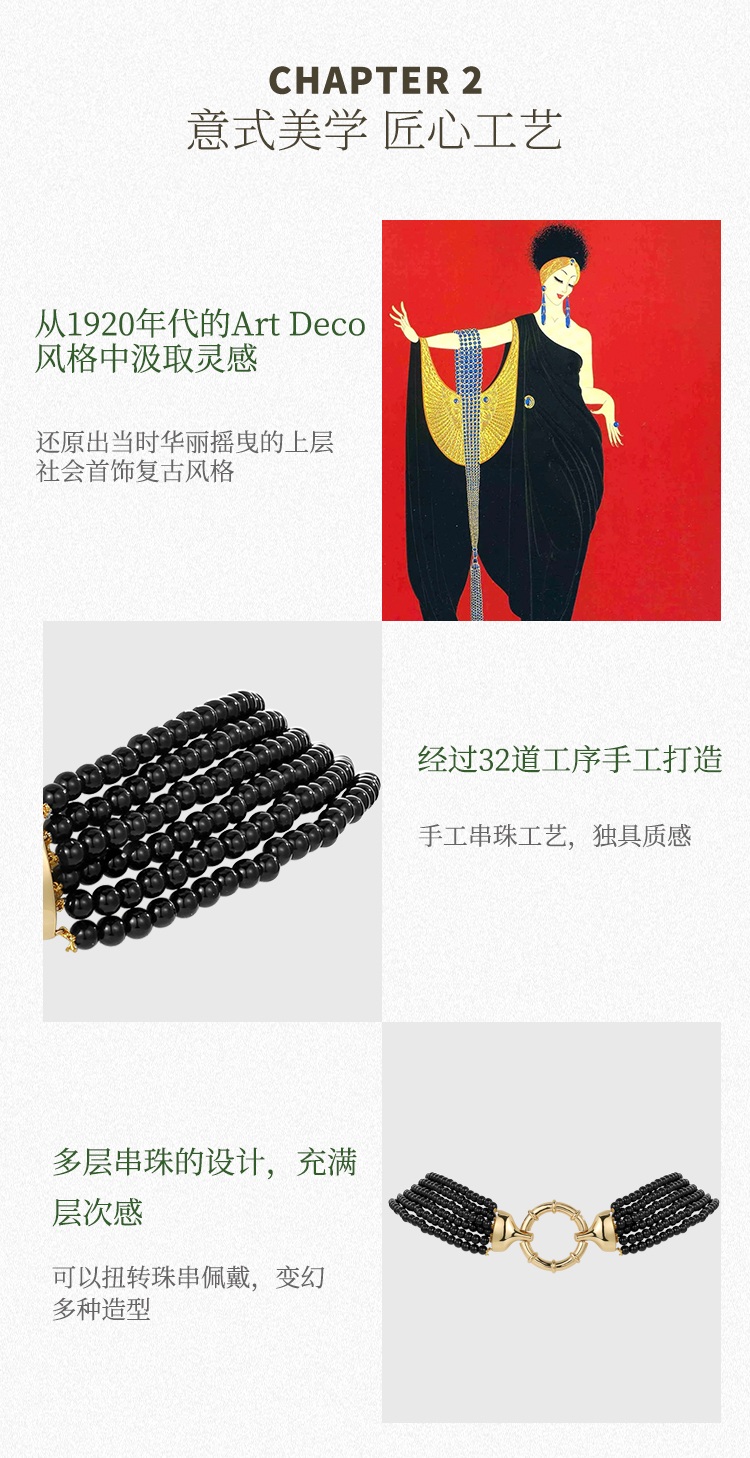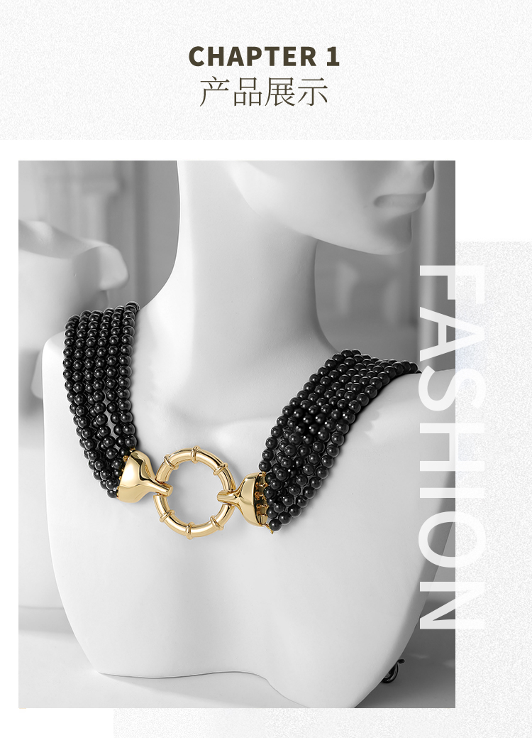 Retro Chic 意大利复古创意饰品 复古珠链项链(经典黑)