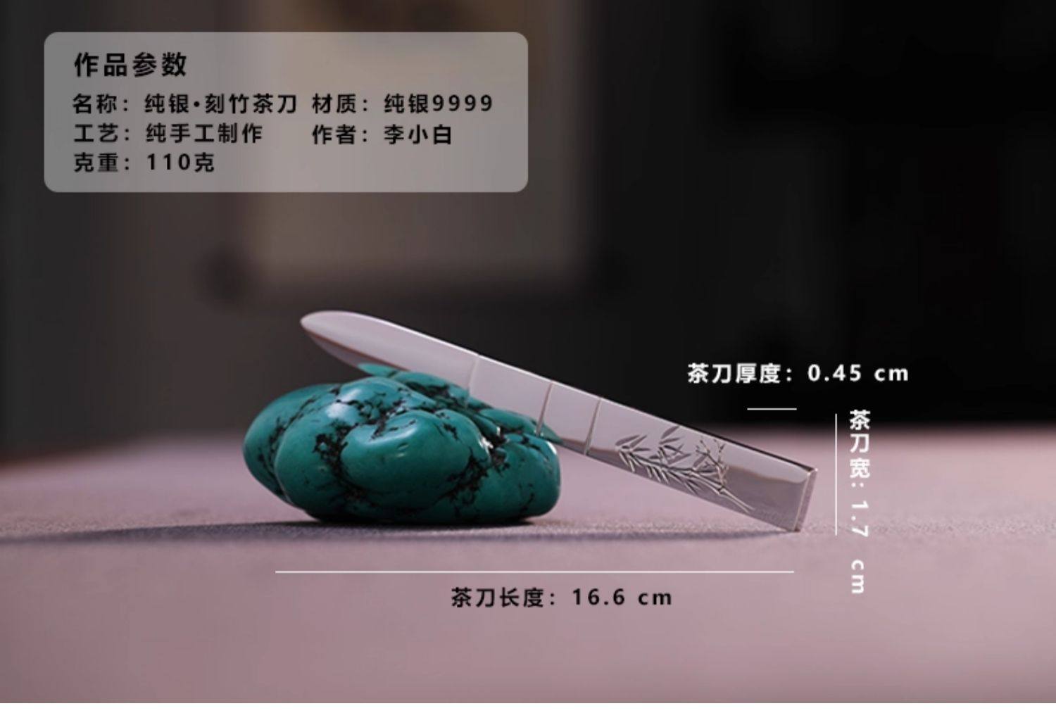 李小白 9999纯银茶刀 纯银茶针 全手工纯银茶锥 纯银刻竹茶刀