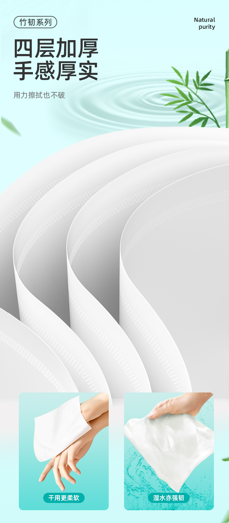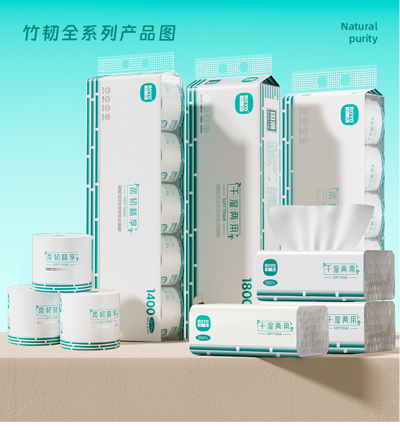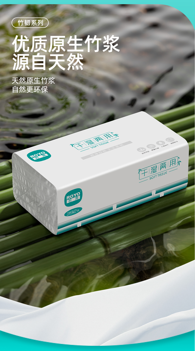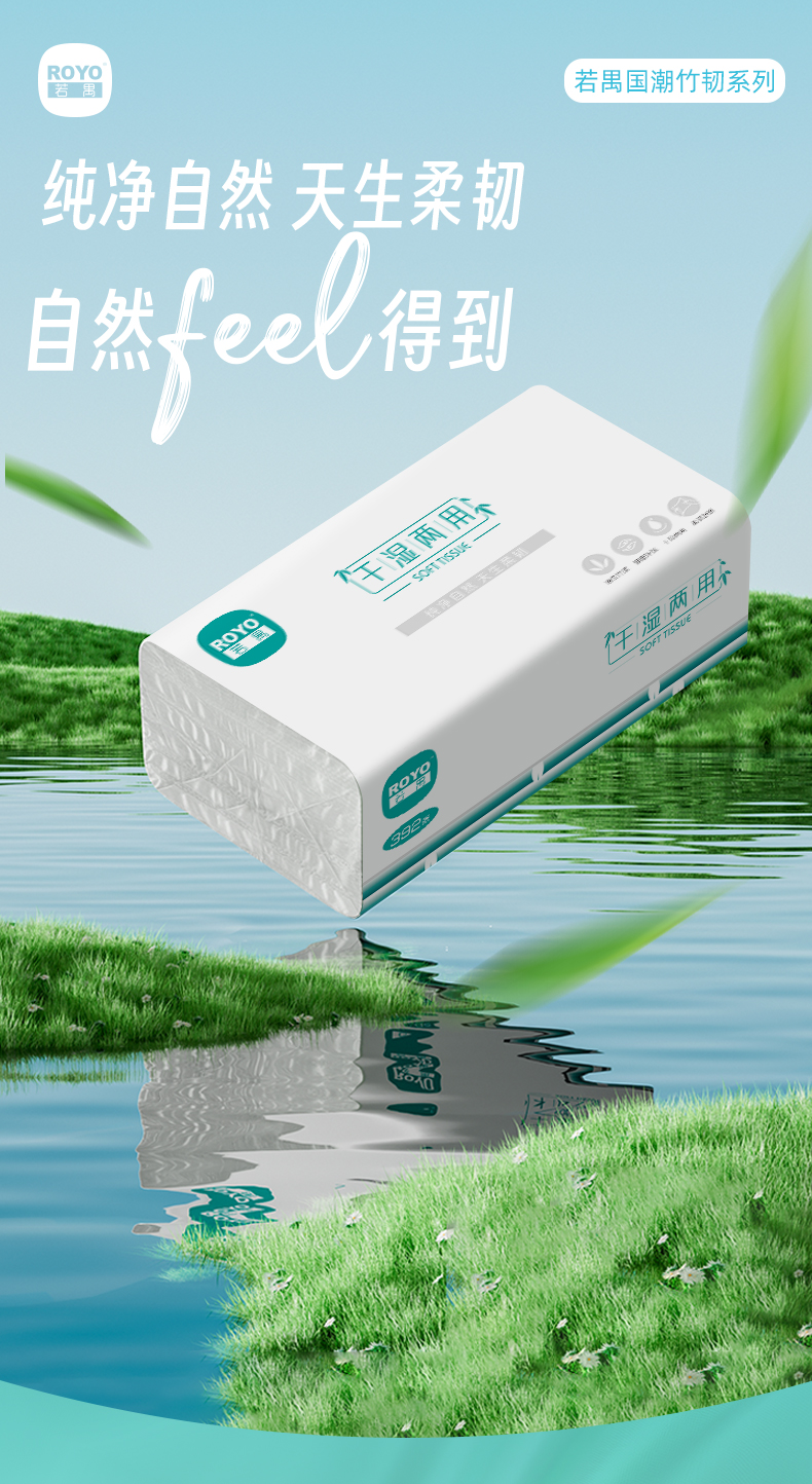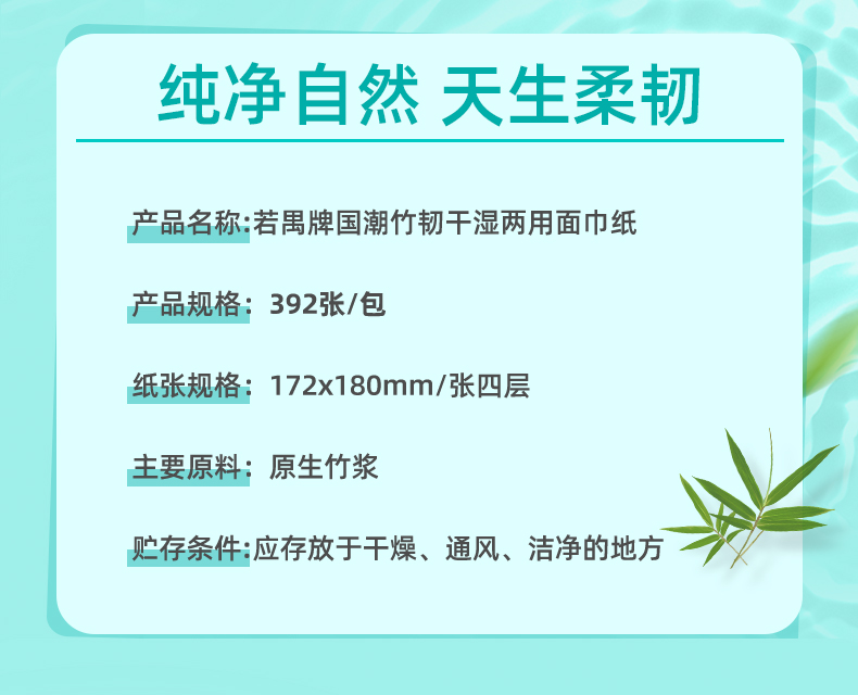 若禺软抽纸干湿两用国潮竹韧系列4层加厚392张/包5包/提到手12提原生竹浆柔韧舒适RR1403