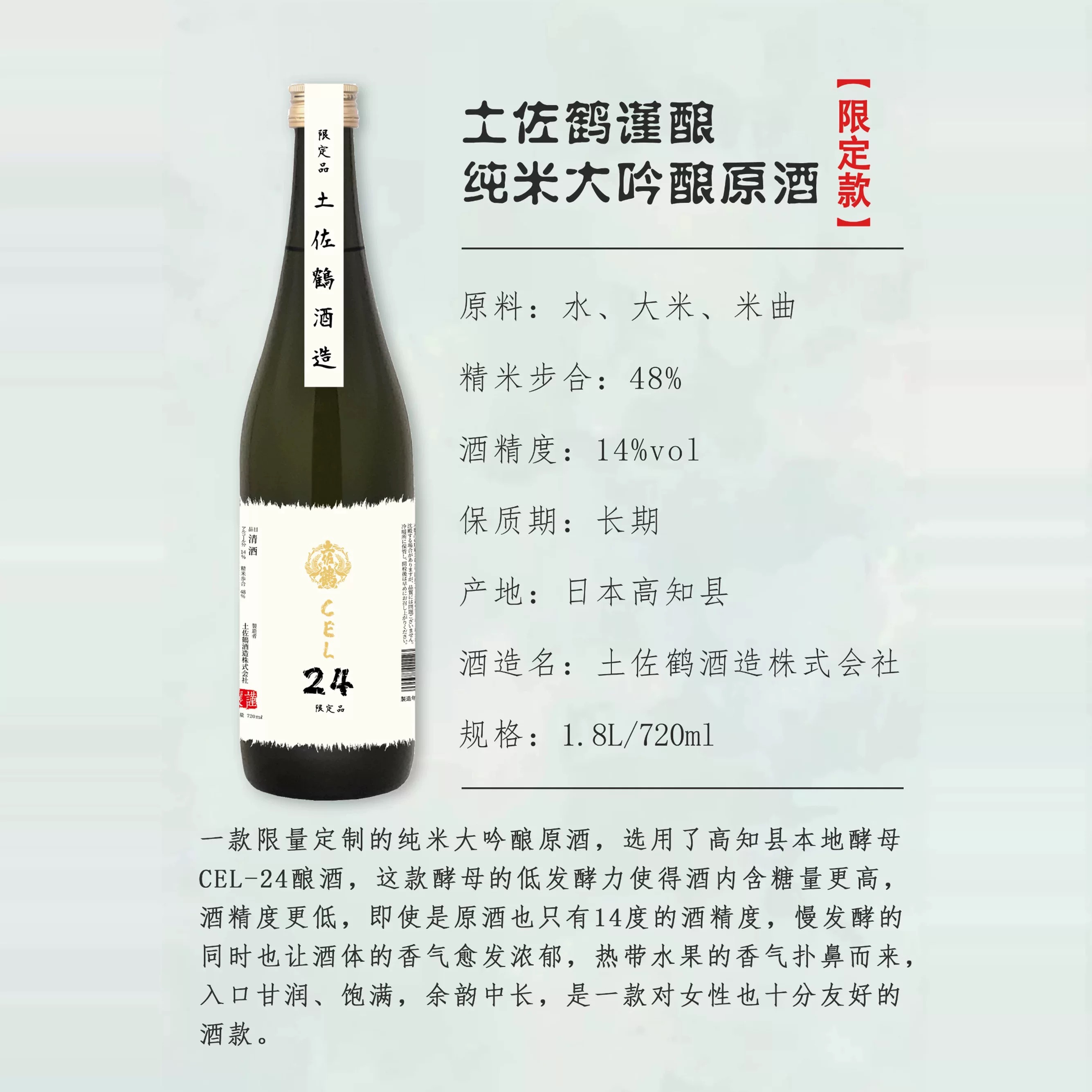 原装进口 土佐鹤谨酿纯米大吟酿原酒(酒精度 14% vol)