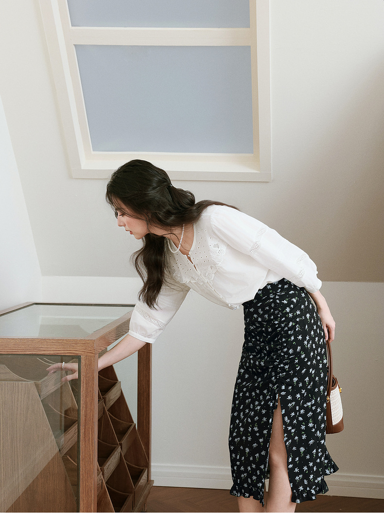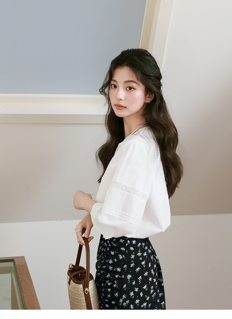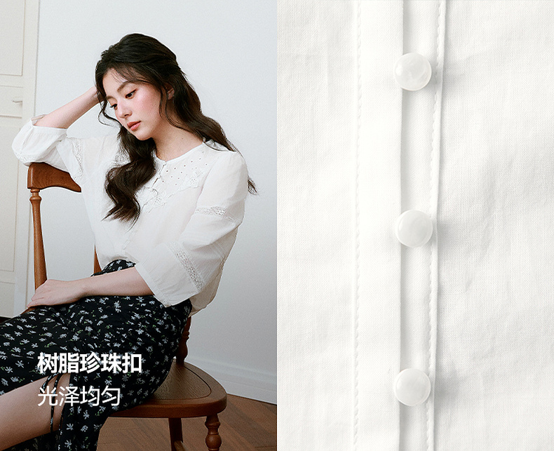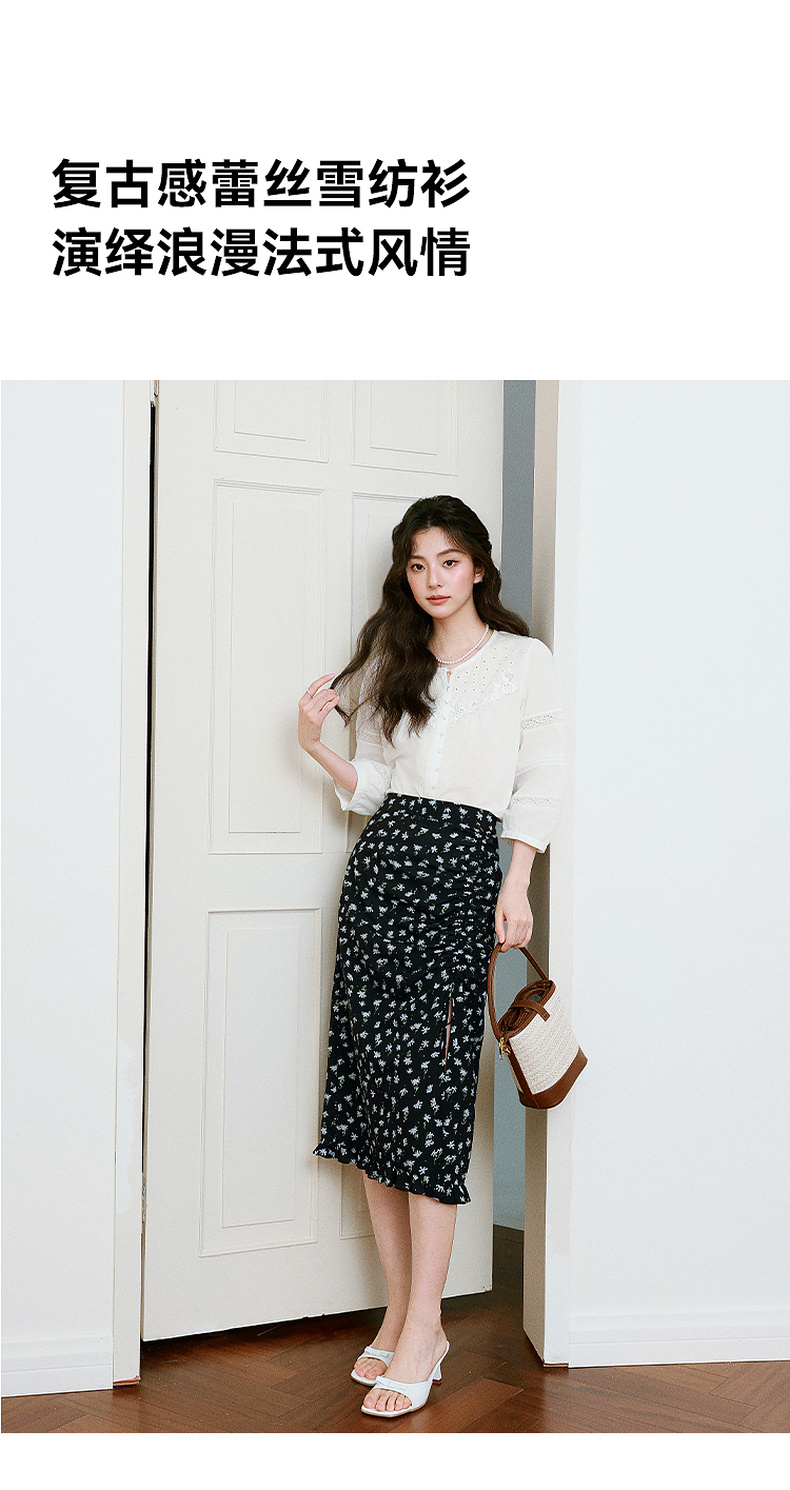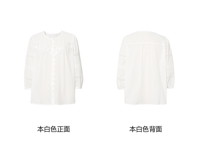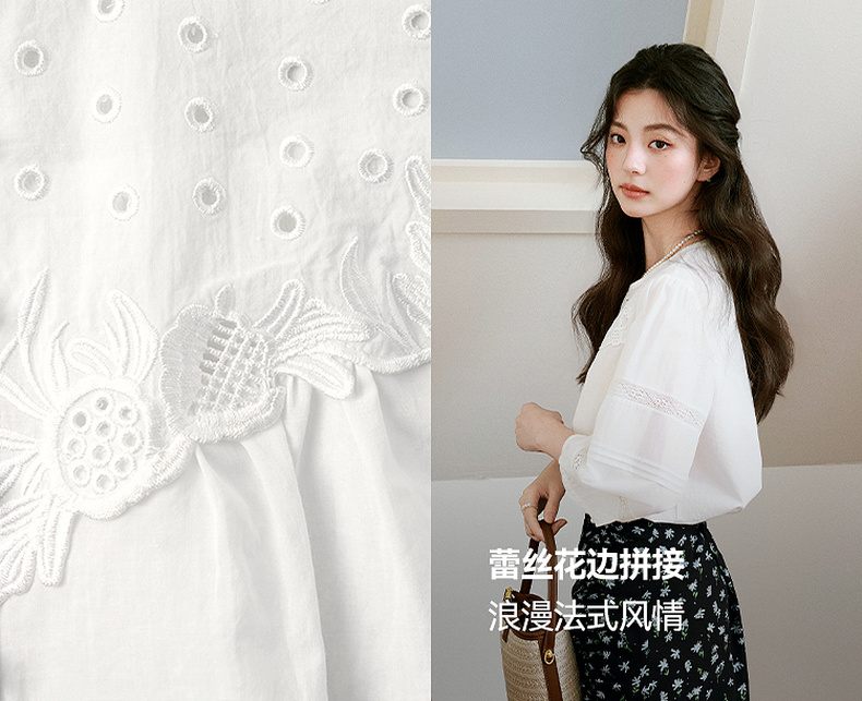 【严选】诗凡黎镂空蕾丝灯笼袖圆领衬衫2025年春新款浪漫法式流行百搭衬衣7G3120031