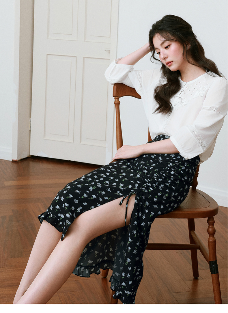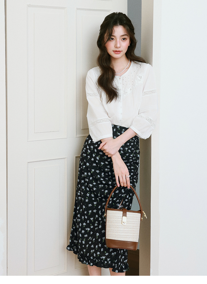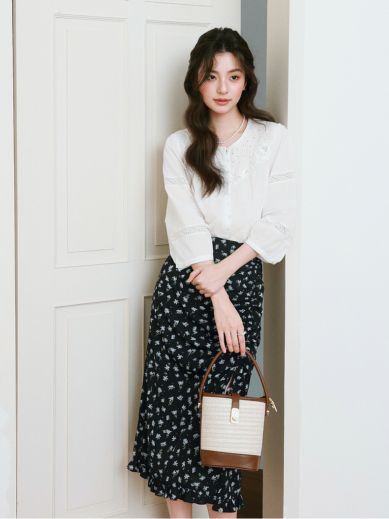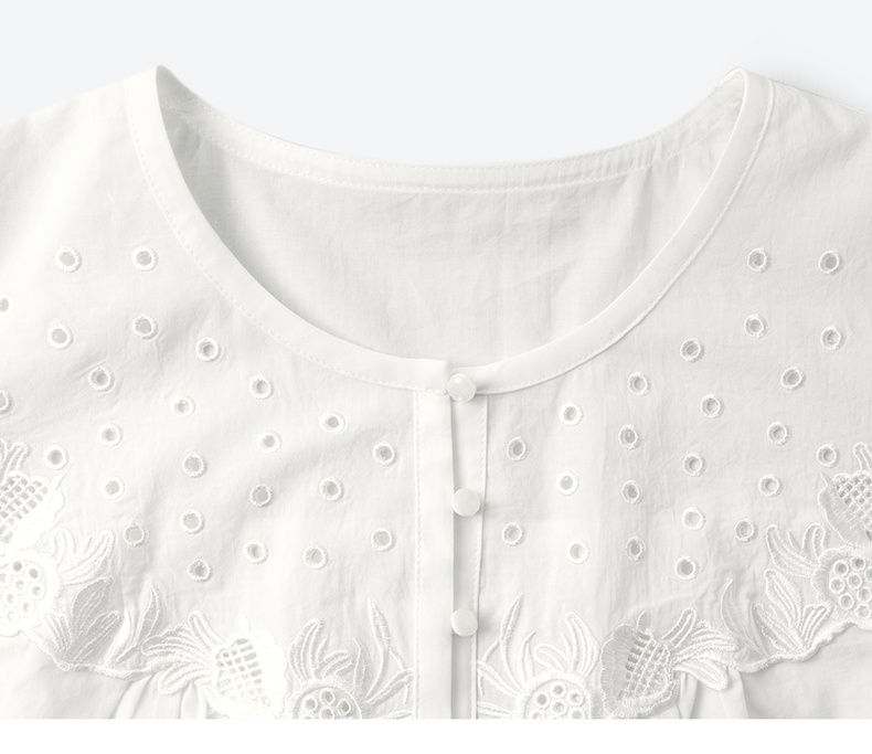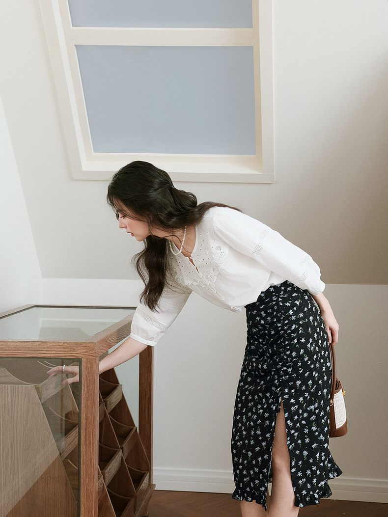 【严选】诗凡黎镂空蕾丝灯笼袖圆领衬衫2025年春新款浪漫法式流行百搭衬衣7G3120031